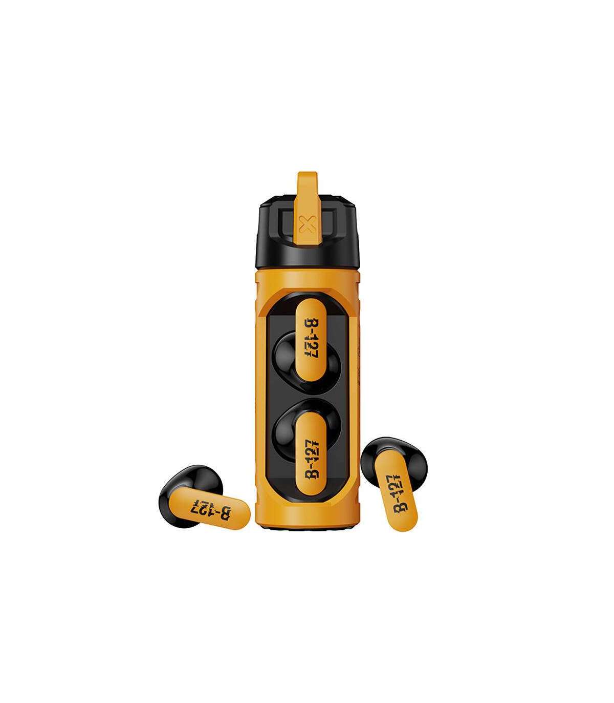 The case of the Transformers TF-T11 headphones is distinguished by its unique rotating design. The cylindrical case with a blue LED indicator gives it a modern touch that is sure to appeal to technology lovers. What's more, mechanical sounds will be heard as it rotates. In addition, the set comes with a practical necklace that allows you to wear the headphones around your neck, which prevents you from losing them.
