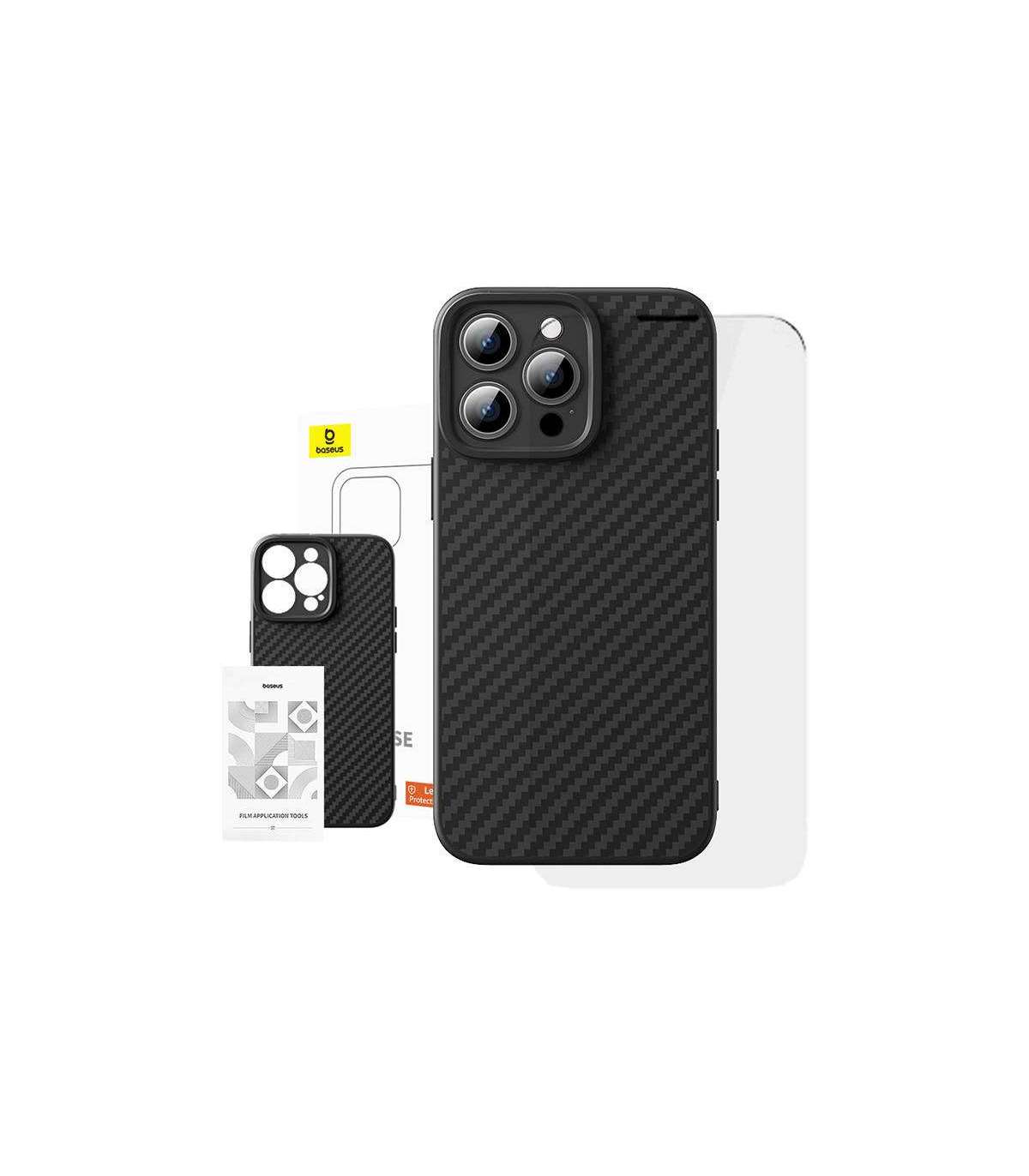 Case Baseus Synthetic Fiber iPhone 15 Pro + tempered glass