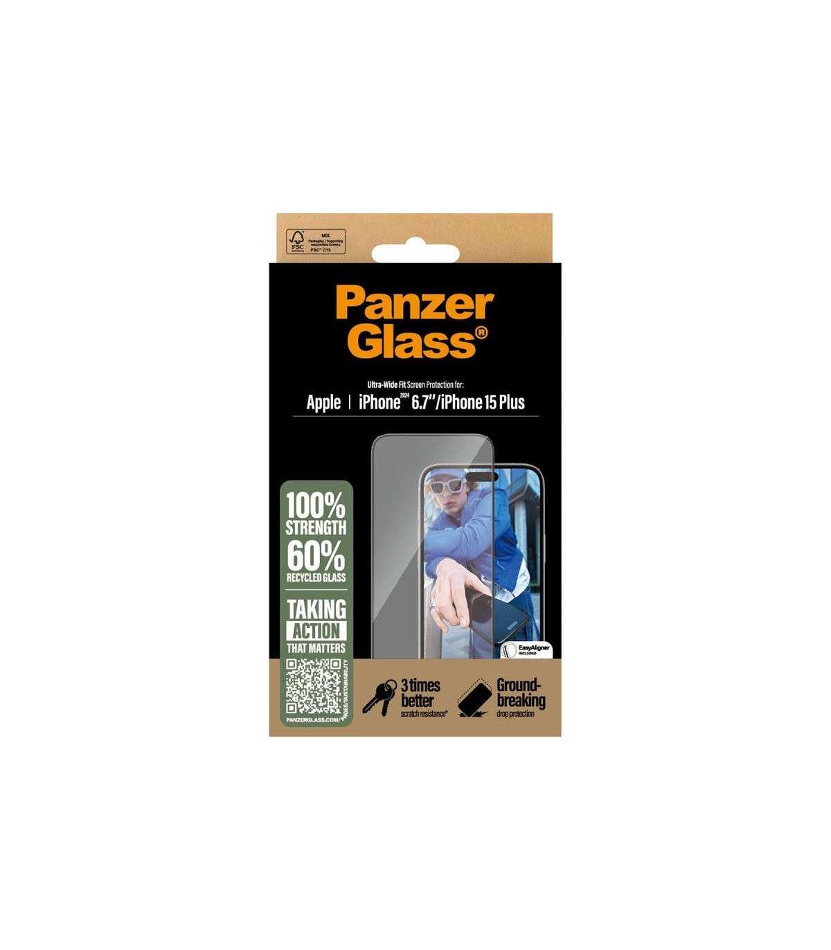 PanzerGlass Screen protector | Apple | iPhone 16 Plus/iPhone 15 Plus | Glass | Transparent | Ultra-Wide Fit