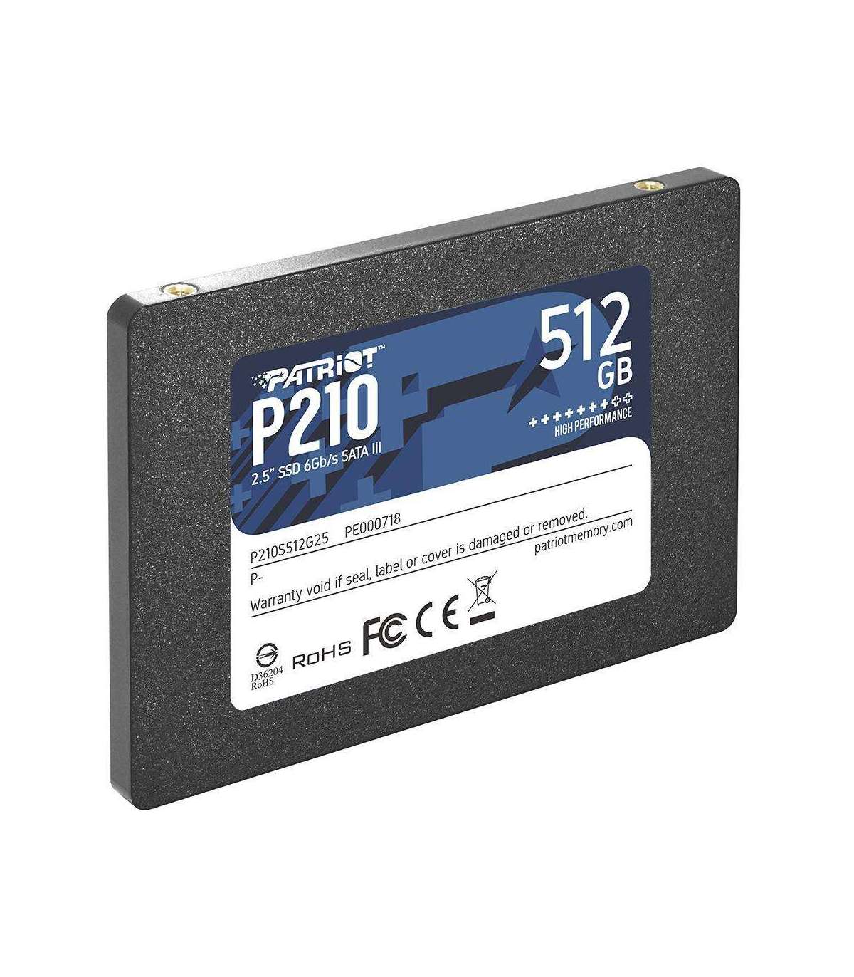 SSD|PATRIOT|P210|512GB|SATA 3.0|Write speed 430 MBytes/sec|Read speed 520 MBytes/sec|2,5"|TBW 240 TB|P210S512G25