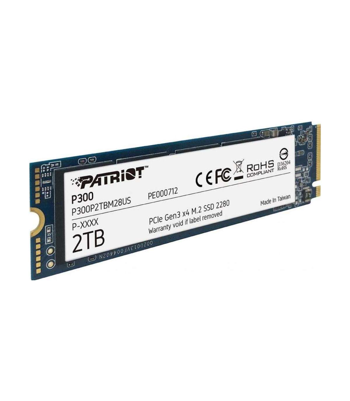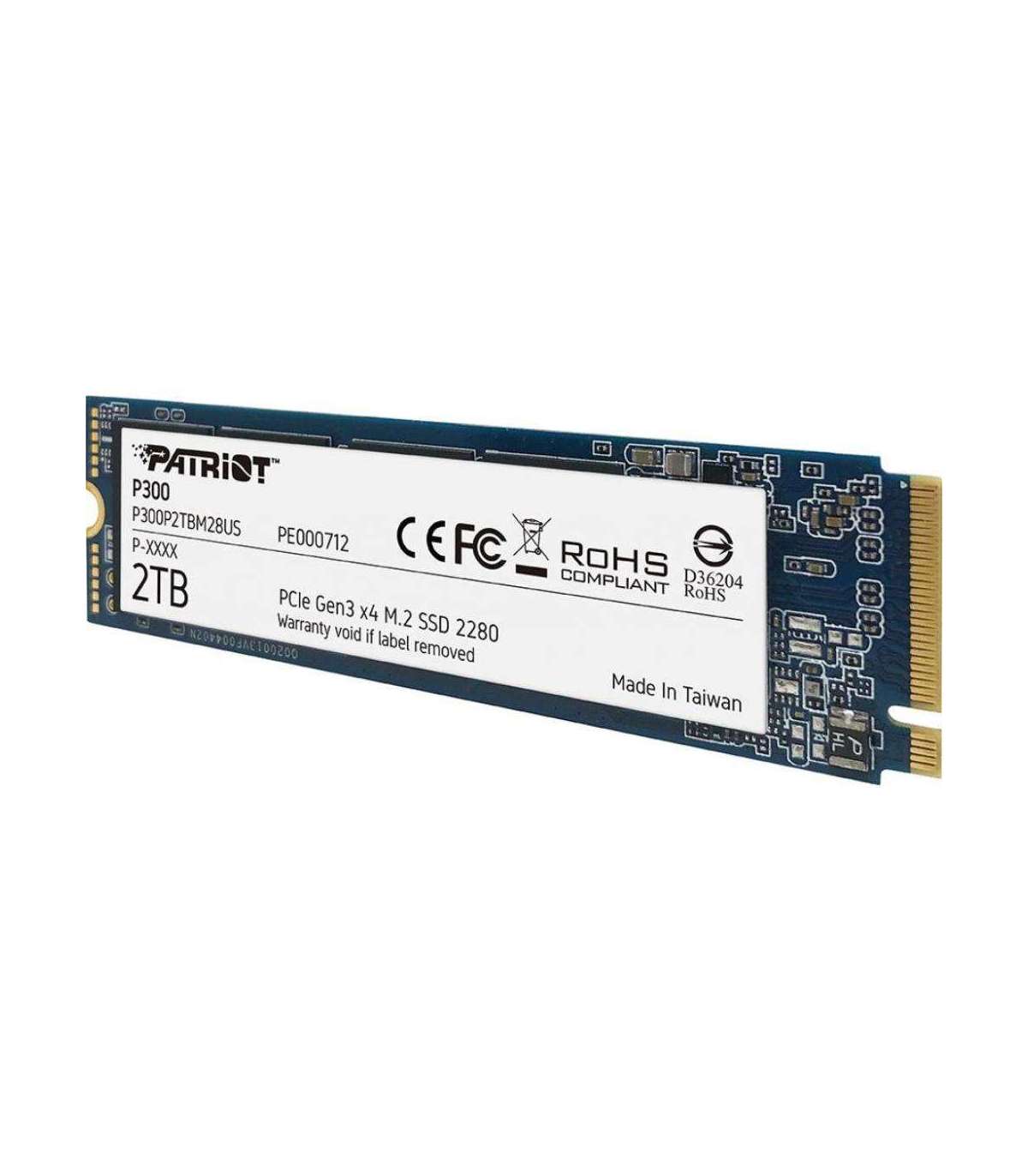 SSD|PATRIOT|P300|2TB|M.2|PCIE|NVMe|QLC|Write speed 1650 MBytes/sec|Read speed 2100 MBytes/sec|3.8mm|TBW 960 TB|P300P2TBM28