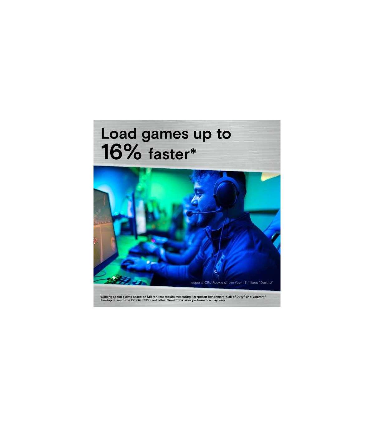 Real tests don’t lie — load games 16% faster1 with the Crucial T500 PCle 4.0 NVMe SSD. Store more games with up to 2TB3 of storage. With Microsoft® DirectStorage, render faster6 and enjoy more detailed game textures.