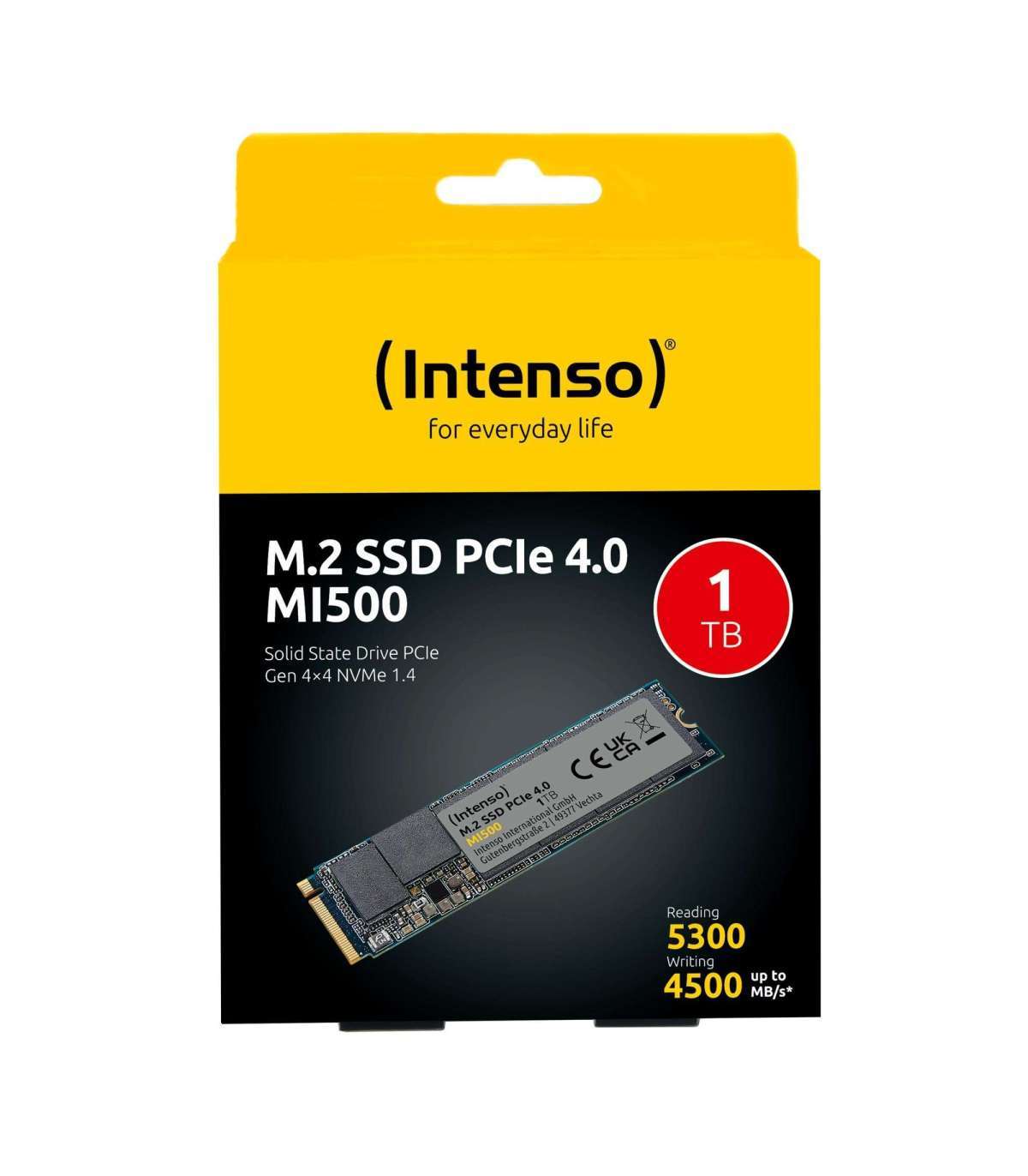 SSD|INTENSO|MI500|1TB|M.2|NVMe|3D NAND|Write speed 4500 MBytes/sec|Read speed 5300 MBytes/sec|4mm|TBW 600 TB|MTBF 1500000 hou