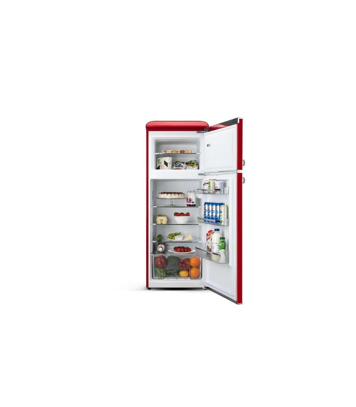 ETA | Refrigerator | ETA253490030E Storio retro | Energy efficiency class E | Free standing | Double Door | Height 148.2 cm | Fridge net capacity 170 L | Freezer net capacity 45 L | 44 dB | Red