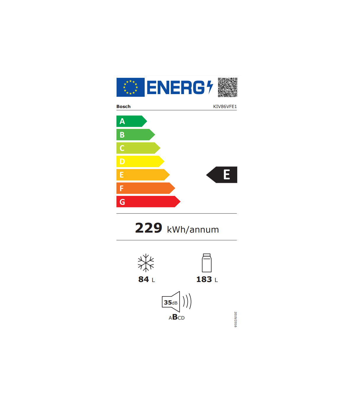 Bosch | Refrigerator | KIV86VFE1 | Energy efficiency class E | Built-in | Combi | Height 177.5 cm | Fridge net capacity 183 L | Freezer net capacity 84 L | 35 dB | White