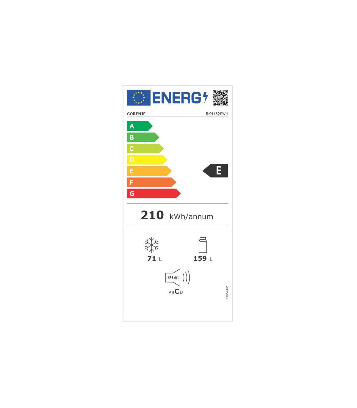 Gorenje Refrigerator | RK4162PW4 | Energy efficiency class E | Free standing | Combi | Height 161.3 cm | Fridge net capacity 159 L | Freezer net capacity 71 L | 39 dB | White