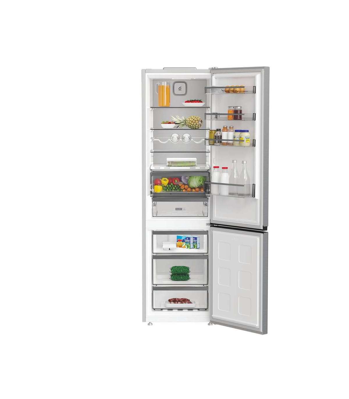 Whirlpool Refrigerator | WHK 26403 XP6E | Energy efficiency class C | Free standing | Combi | Height 203.5 cm | No Frost system | Fridge net capacity 249 L | Freezer net capacity 106 L | 35 dB | Pearl Inox