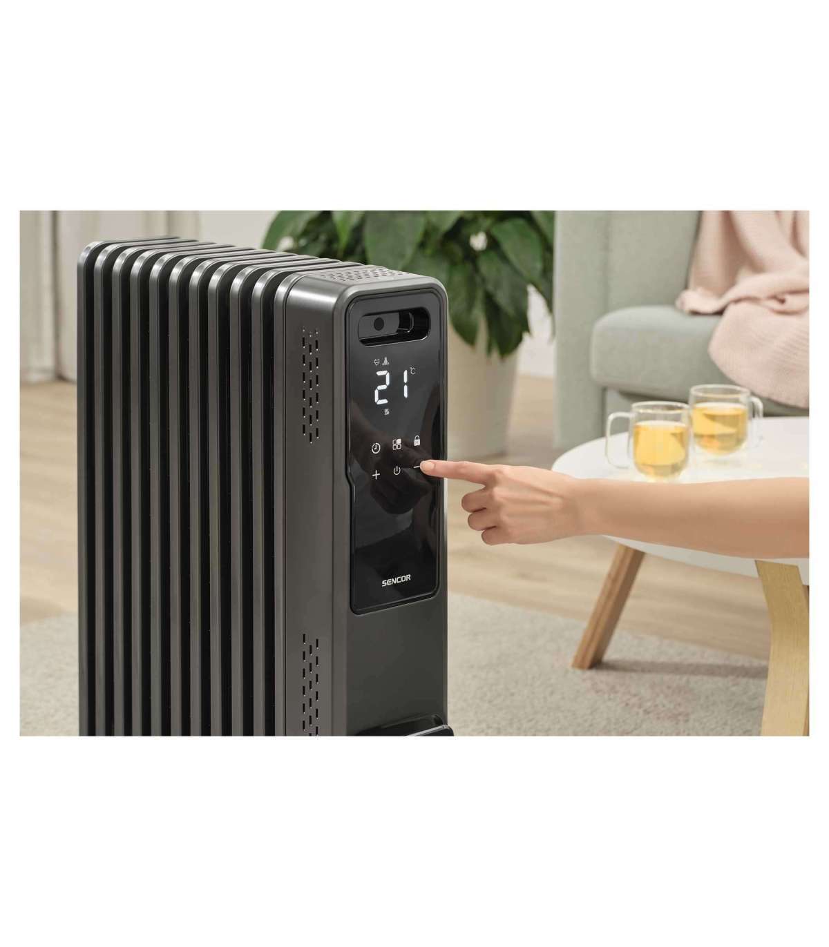 Juhtimine digitaalse juhtpaneeli kaudu ja Sencor HOME rakendusega mobiilist, mis annab teile mugava ja täieliku kontrolli toa temperatuuri üle praktiliselt kõikjalt.