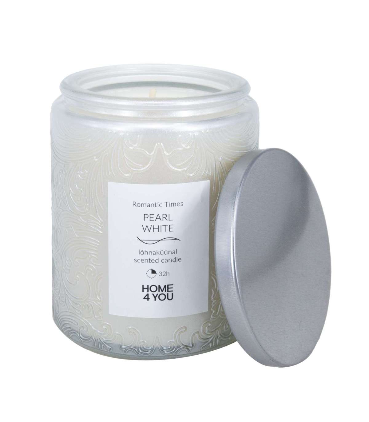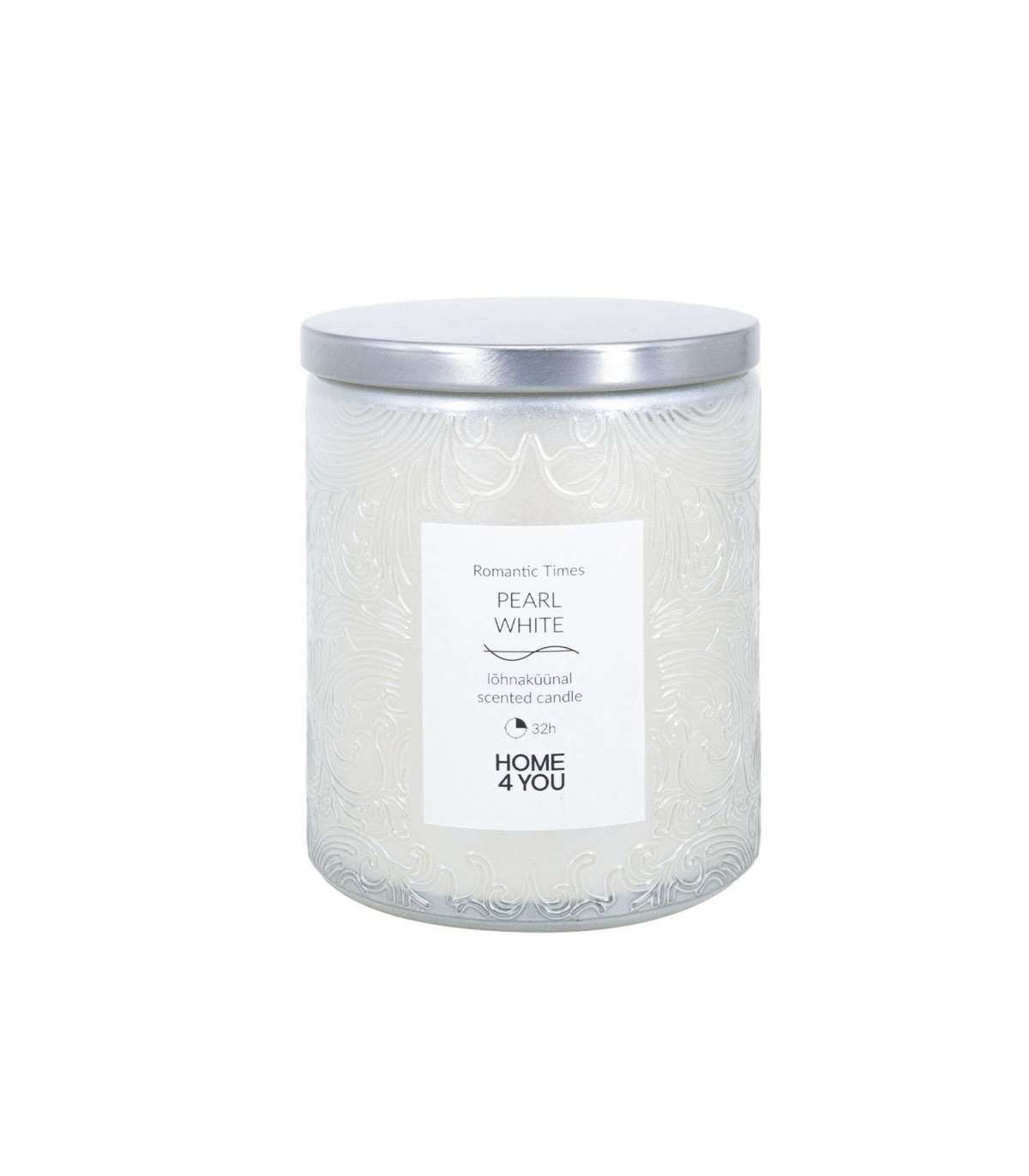 Klaasküünal ROMANTIC TIMES H9cm, pärlvalge, vanilje ja kaneel
