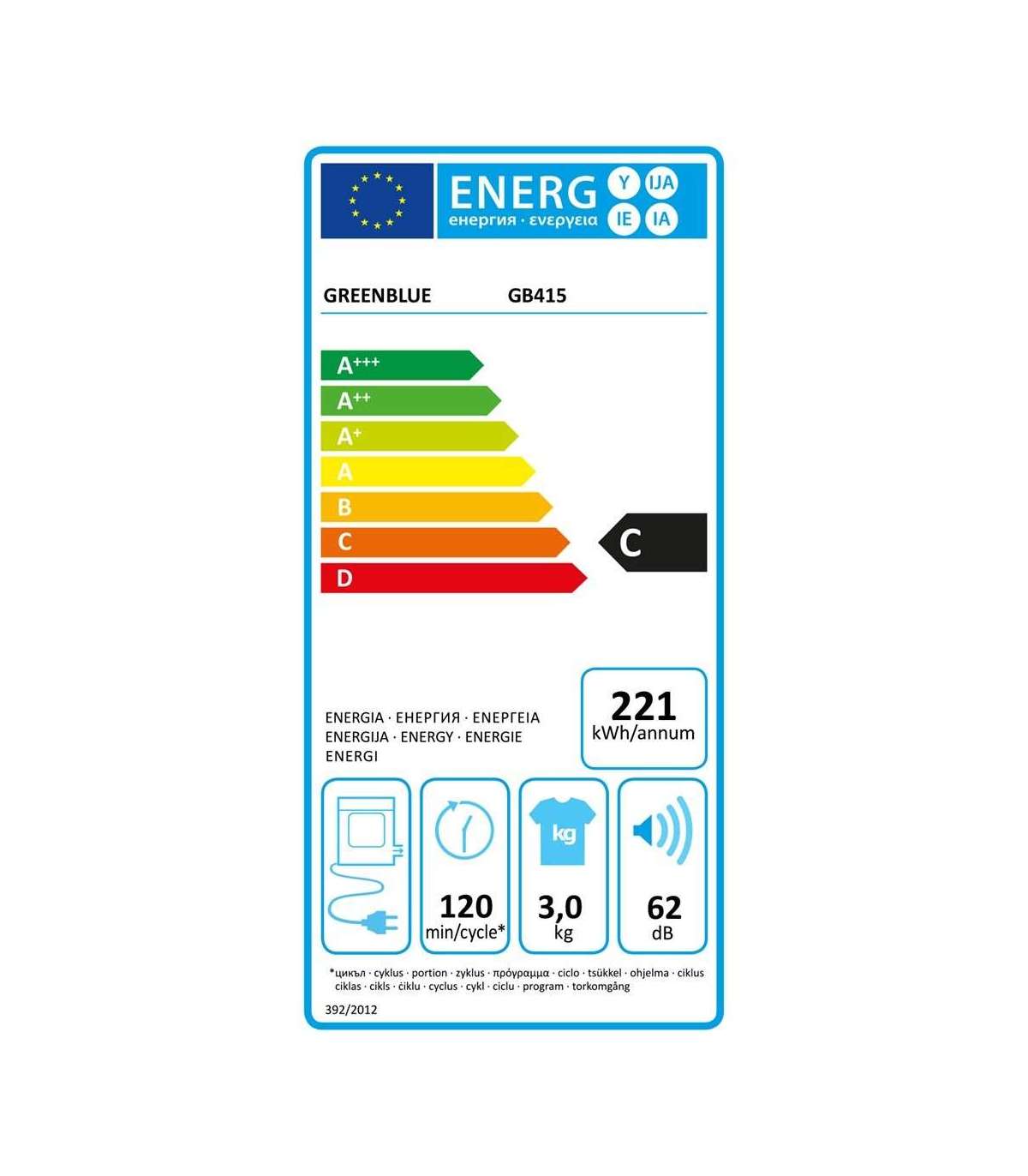 GreenBlue electric tumble dryer for clothes, 3kg load, GB415 GR