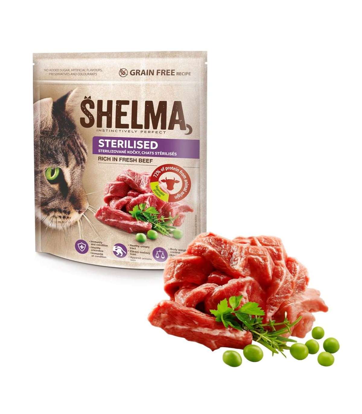 SHELMA Sterilised Rich in beef - dry cat food - 750g