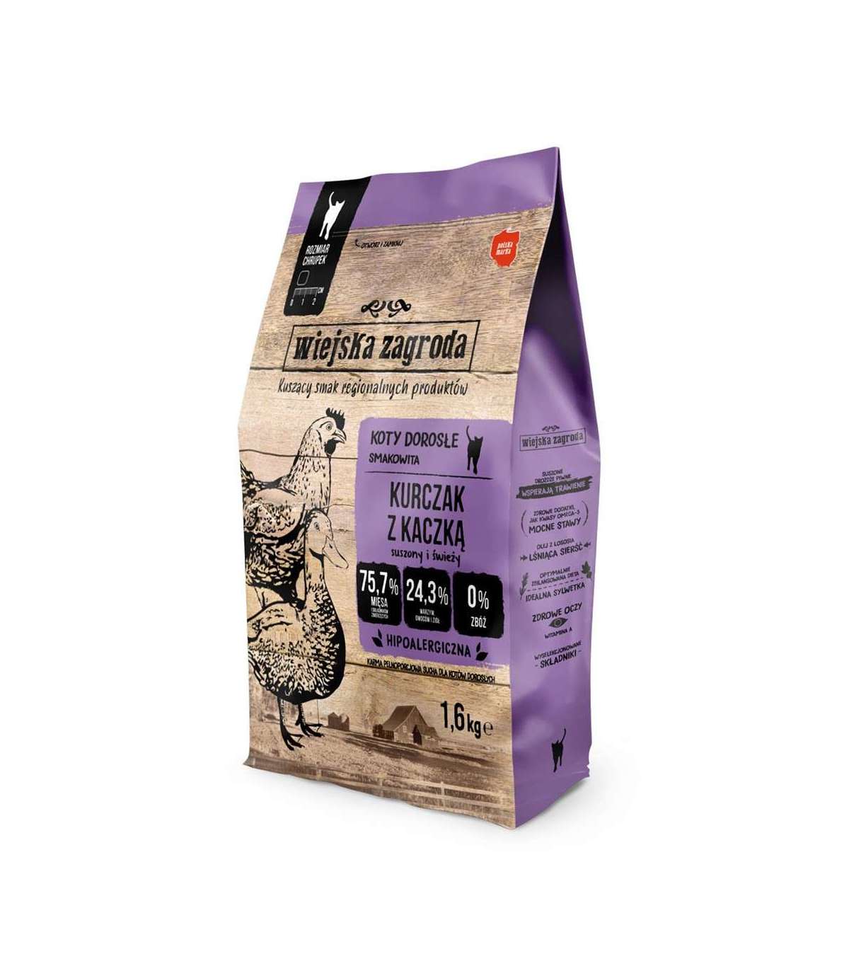 WIEJSKA ZAGRODA Chicken with duck - dry cat food - 1,6kg
