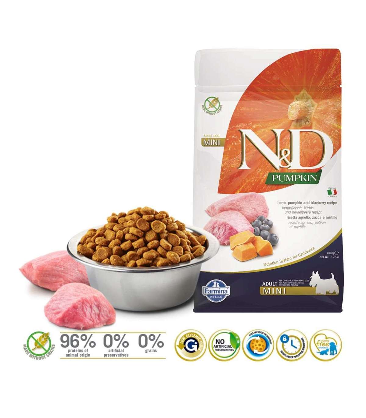 FARMINA N&D Pumpkin Dog Lamb & Blueberry Adult Mini - dry dog food - 800 g