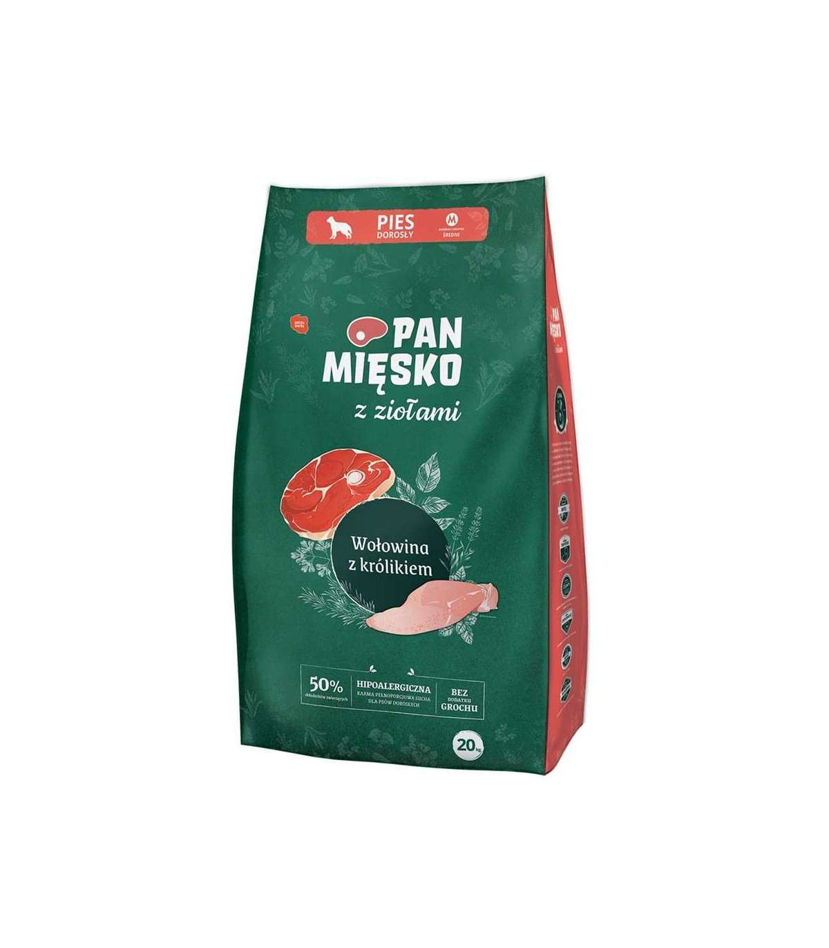 PAN MIĘSKO with herbs Beef with rabbit M - dry dog food - 20kg