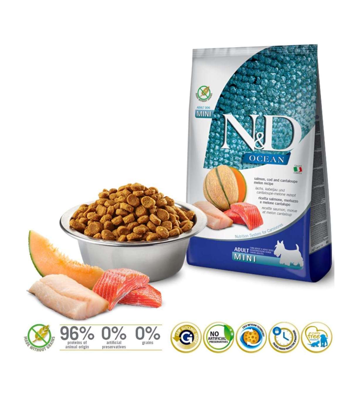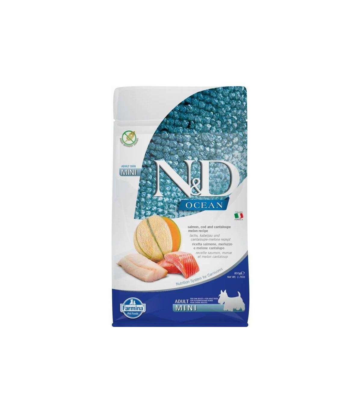 FARMINA N&D Ocean Dog Salmon, Cod, Cantaloupe, Melon Adult Mini - dry dog food - 800 g