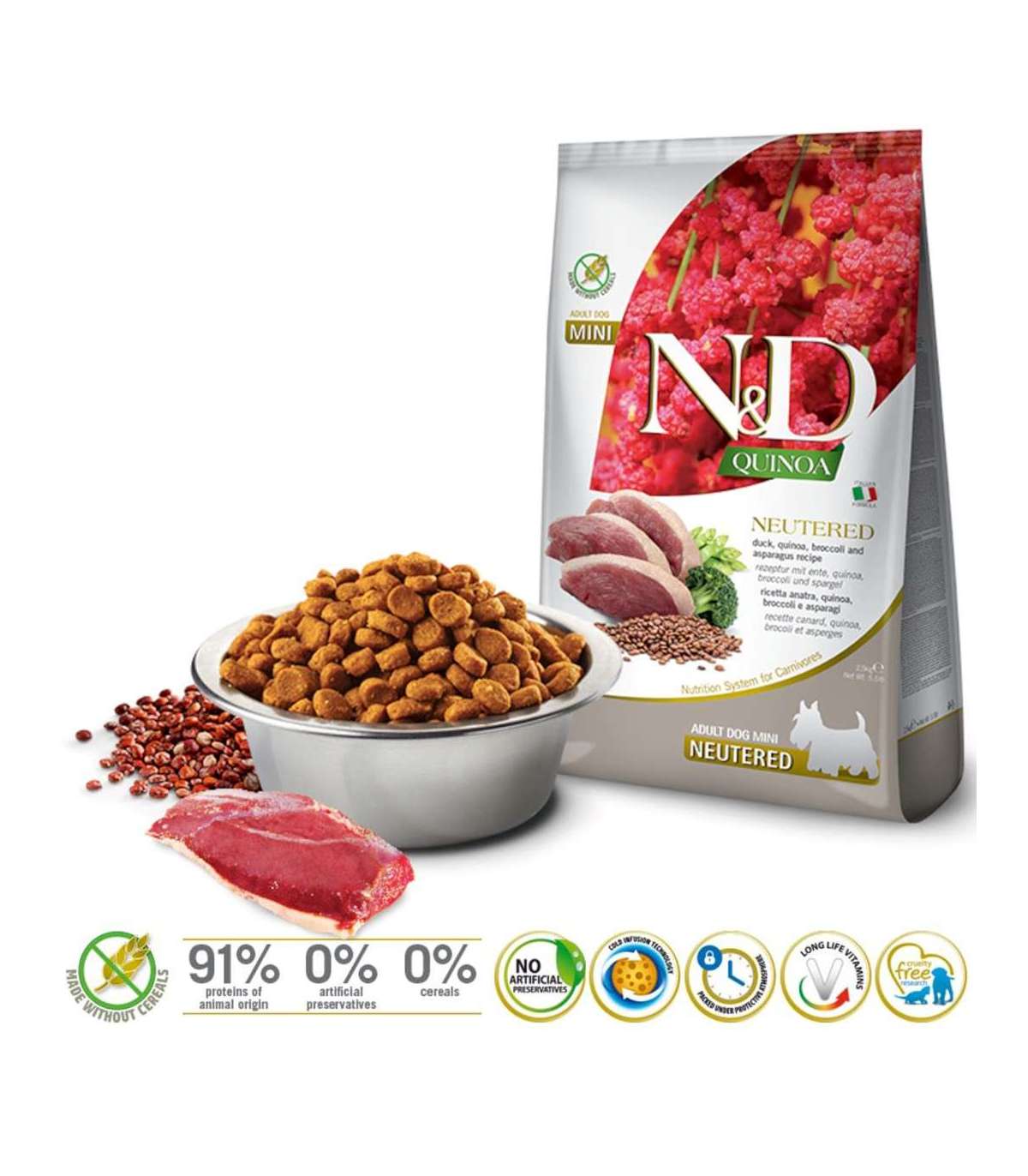 FARMINA N&D Quinoa Dog Duck, Broccoli, Asparagus Neutered Adult Mini - dry dog food - 2.5 kg