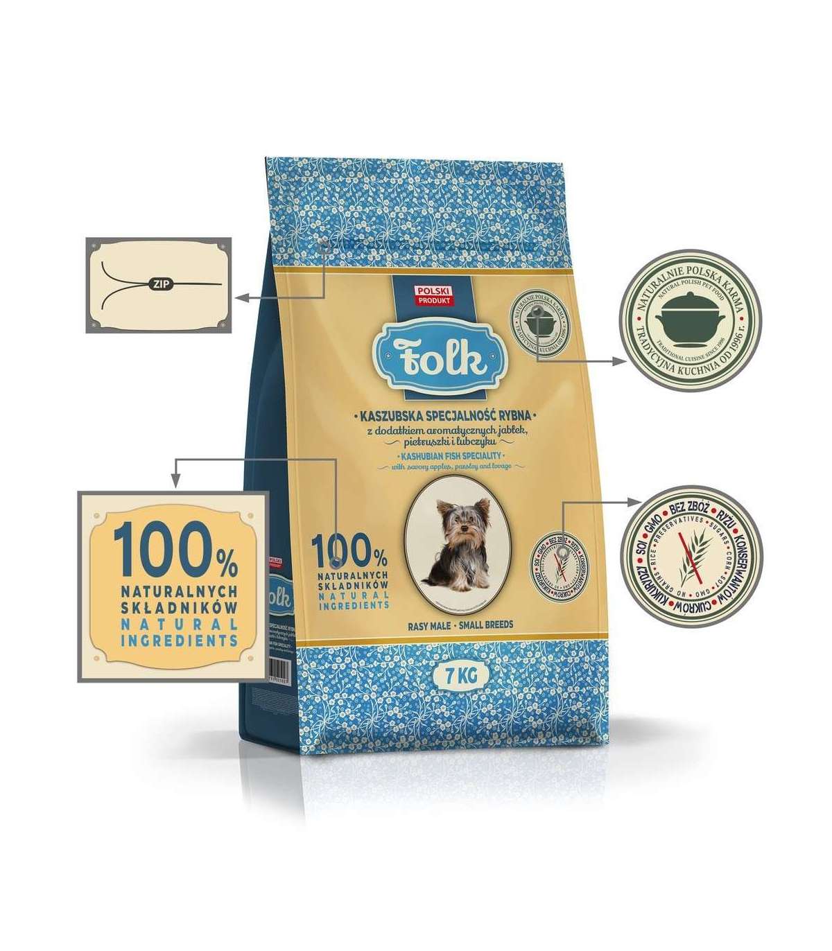 FOLK Small breeds Kashubian-style fish specialty with apples, parsley and lovage - dry dog food - 7kg