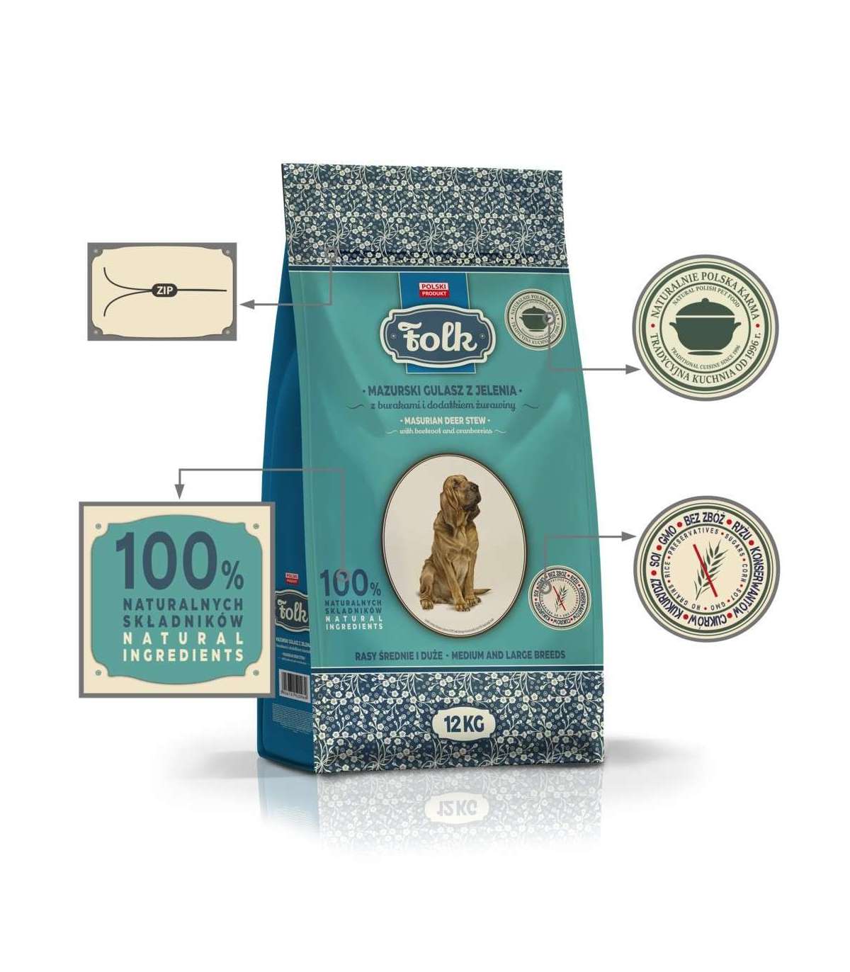 FOLK Medium and large breeds Traditional masurian venison stew with beets and cranberries - dry dog food - 12kg