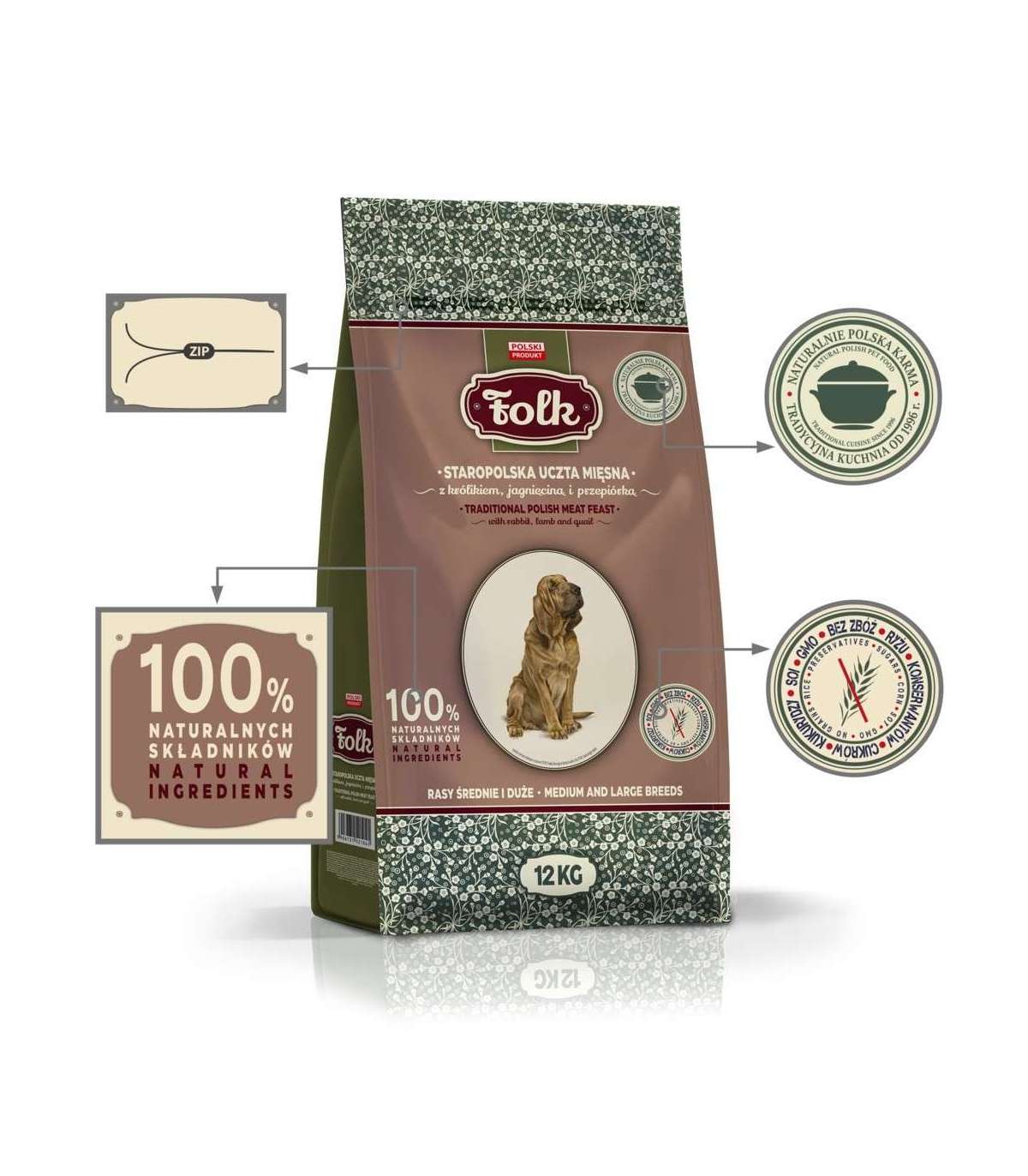 FOLK Medium and large breeds Traditional polish meat feast with rabbit, lamb and quail - dry dog food - 12kg