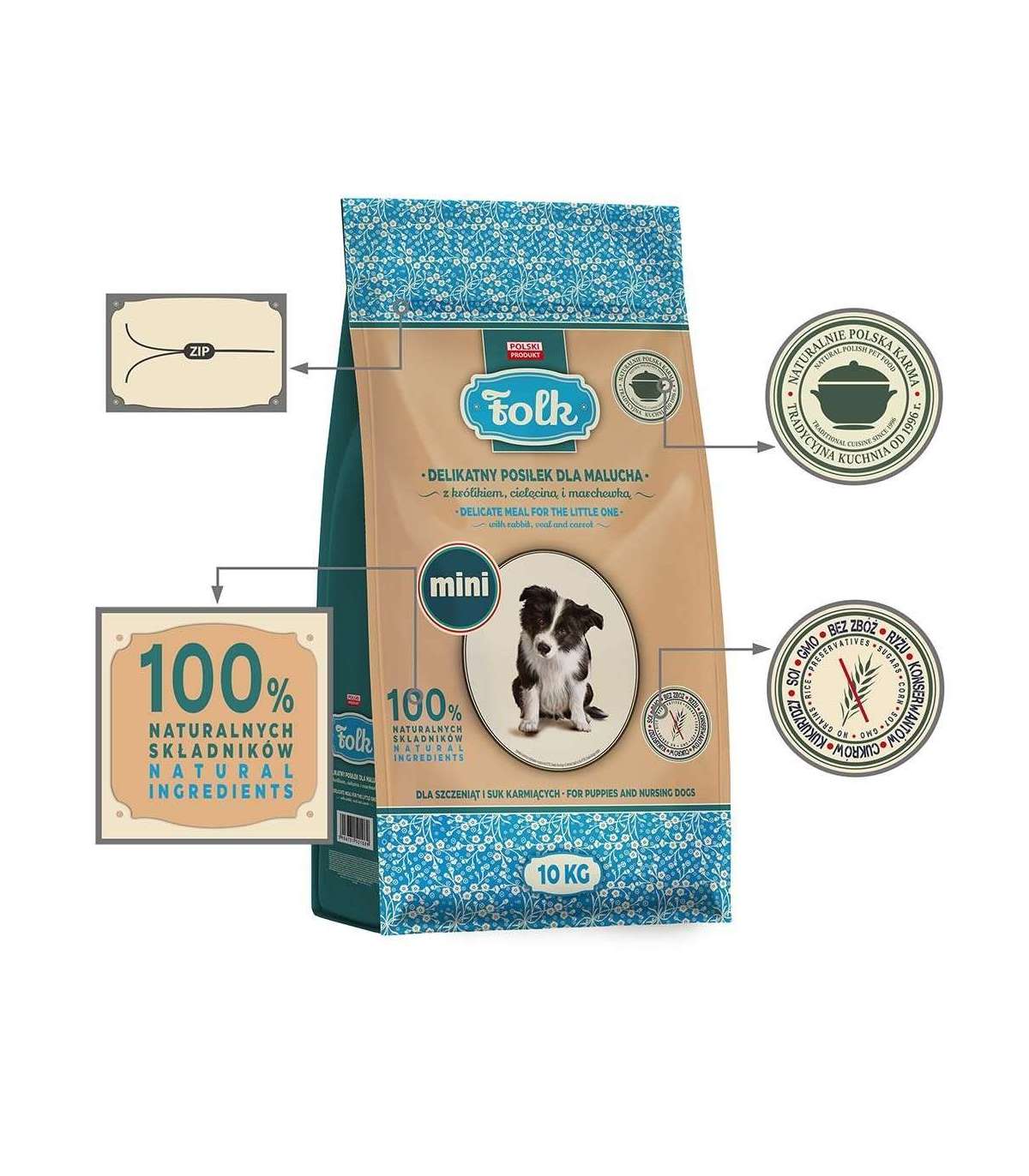 FOLK Junior Small breeds Gentle meal for puppy with rabbit, veal and carrot - dry dog food - 10kg
