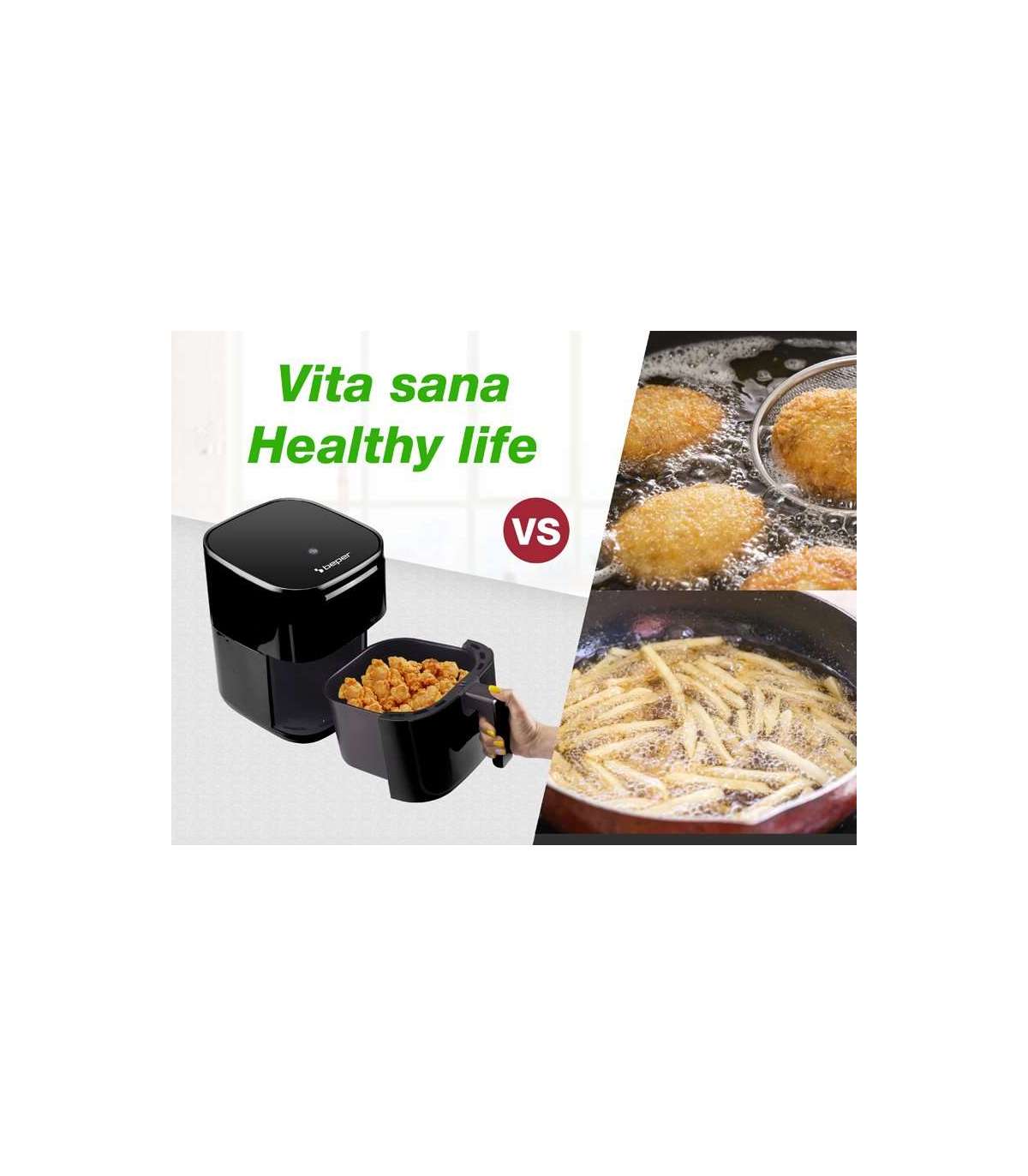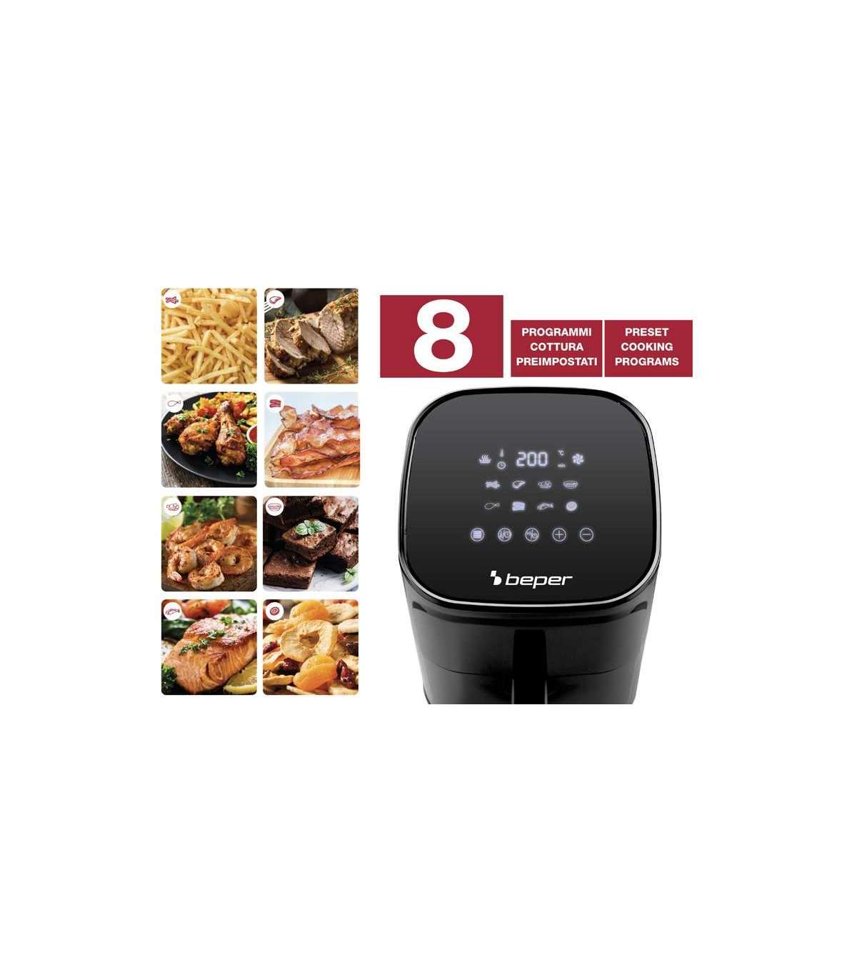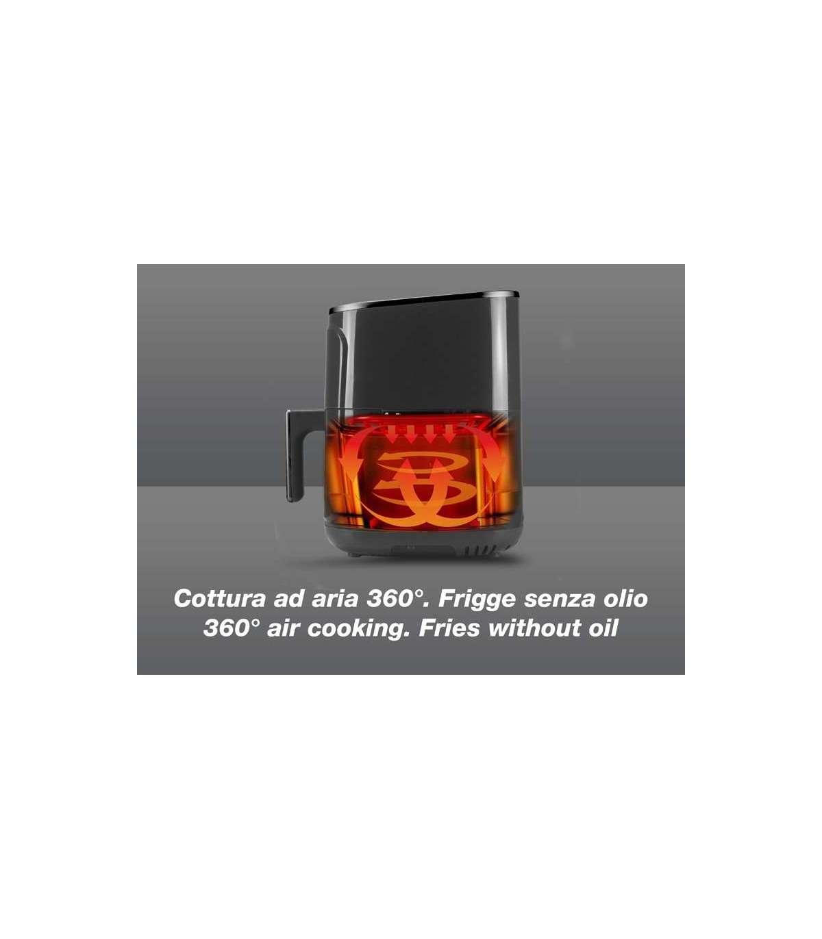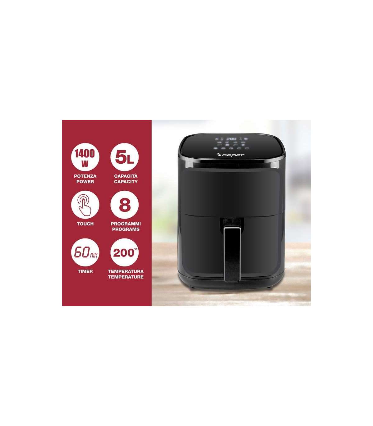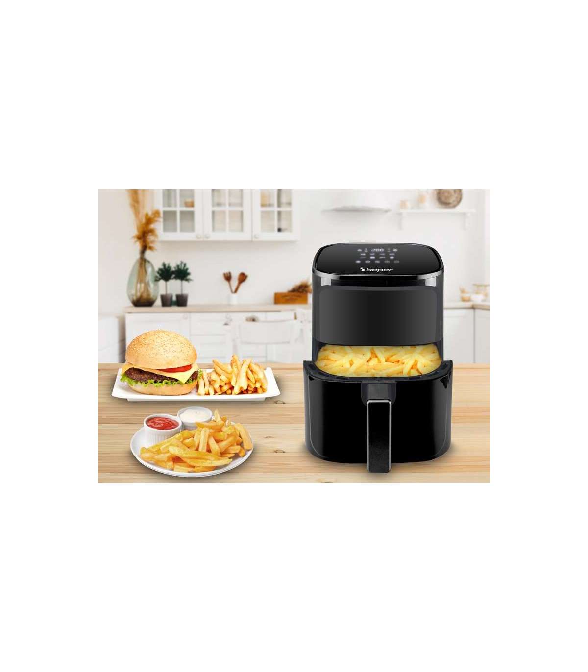 Kuumaõhuga fritüür on kõige tervislikum alternatiiv traditsioonilisele praadimisele, kuna võimaldab praadida ilma või vähese õliga. Ideaalne ka röstimiseks, küpsetamiseks ja grillimiseks. Tundliku puuteanduriga digitaalne juhtpaneel, mille abil saab valida 8 eelseadistatud programmi hulgast, reguleerida temperatuure vahemikus 80 kuni 200°C ja seadistada taimerit kuni 60 minutiks. 5-liitrine mahuti ja eemaldatav mittenakkuv alumiiniumrest lihtsaks puhastamiseks. Ülekuumenemise kaitse.