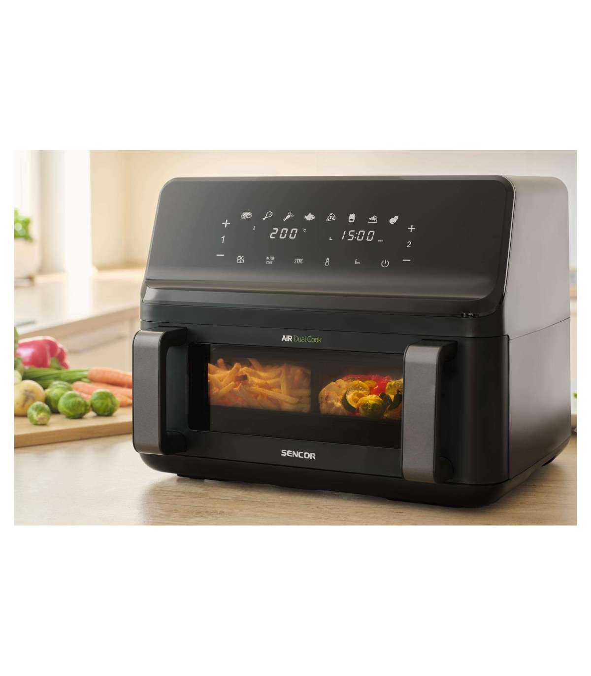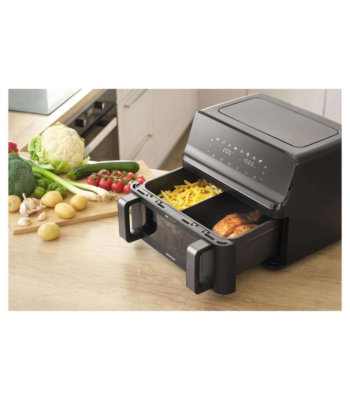 Kaheosaline kuumaõhufritüür Sencor võimaldab valmistada kahte erinevat rooga samaaegselt!