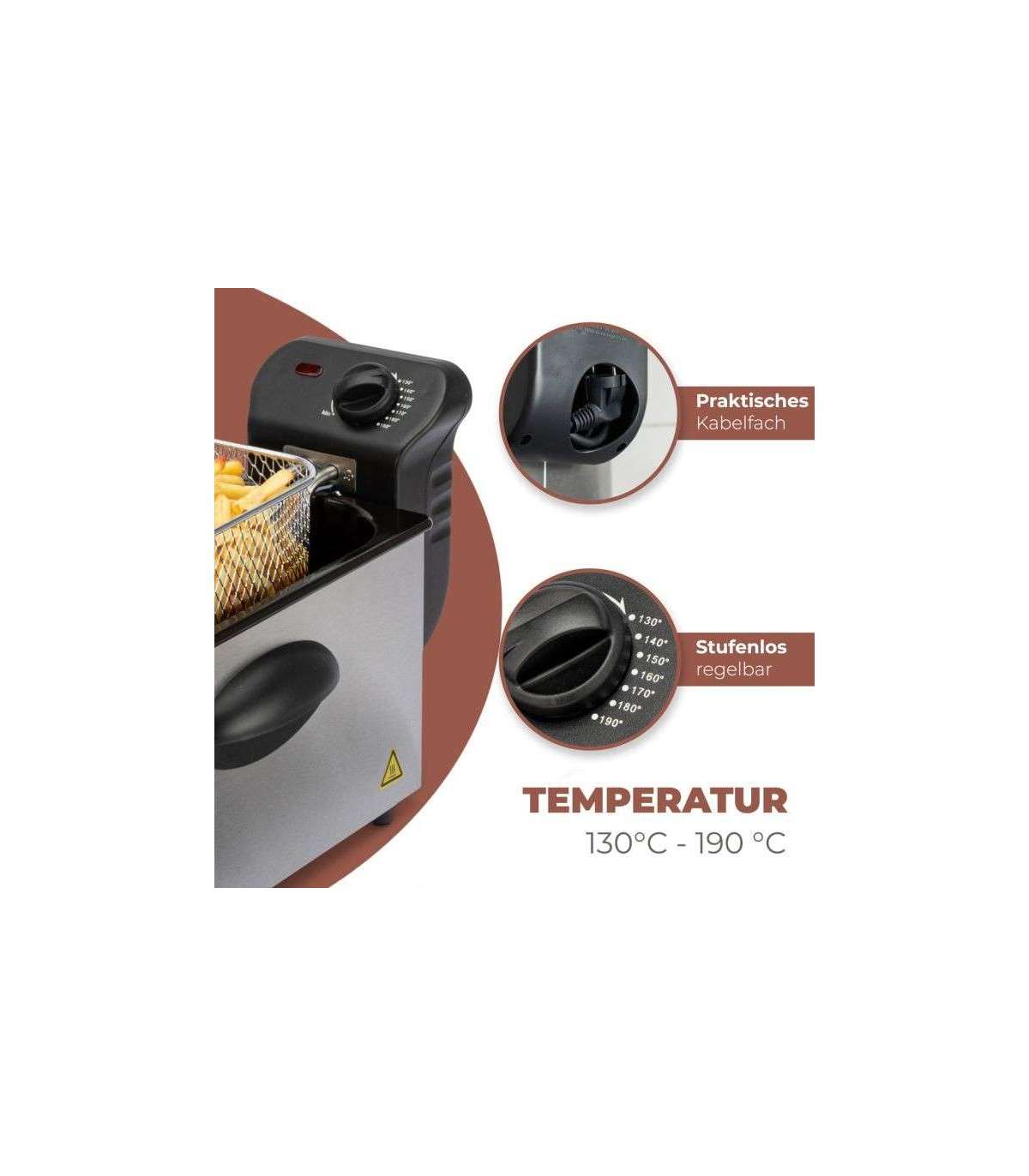 Suur 3-liitrine õli/rasva mahuti teeb sellest fritüürist iga köögi keskpunkti, mis sobib ideaalselt einete jagamiseks pere ja sõpradega. Võimsa 2000W võimsusega kuumeneb see hetkega, mistõttu maitsev krõbedus on käeulatuses vaid minutitega.