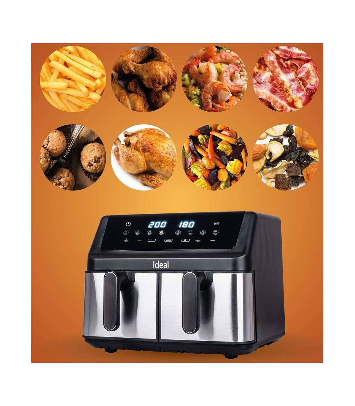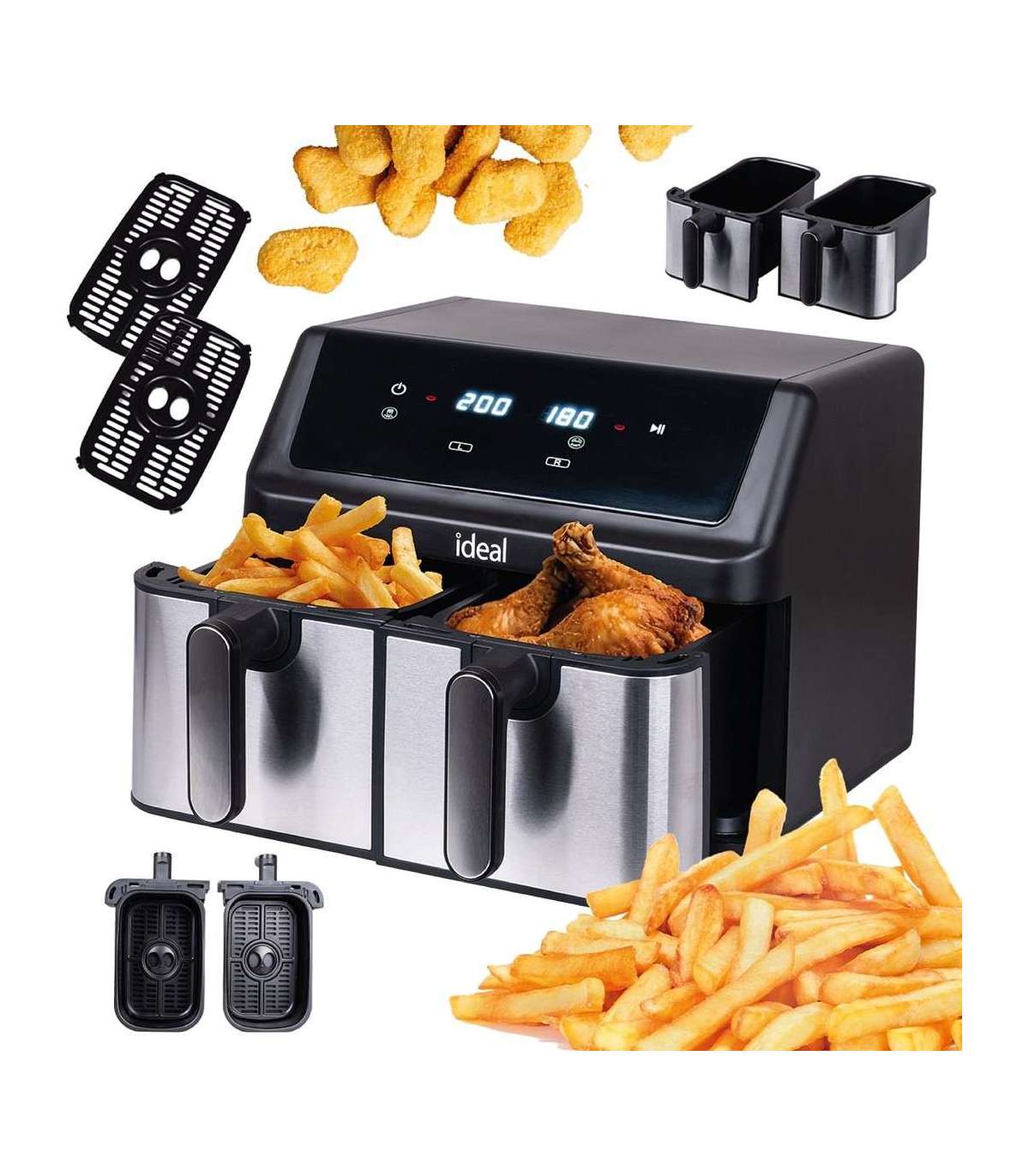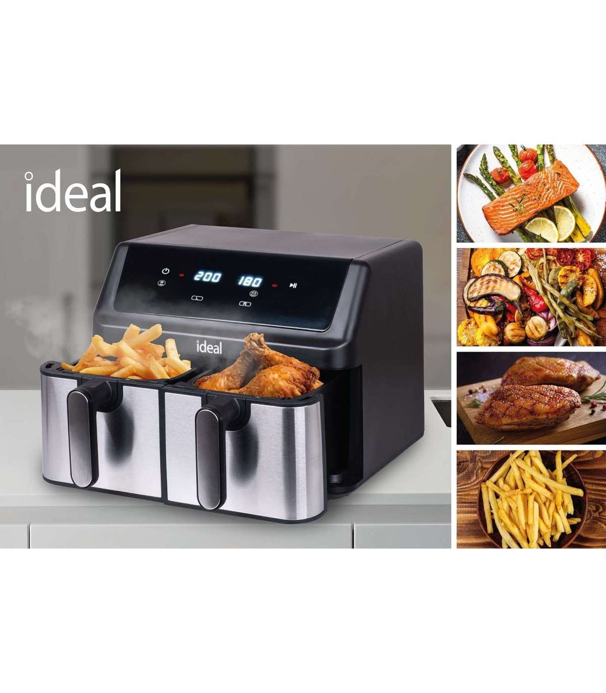 IDEAL Fat-free fryer, double horizontal 9L, 8 functions - including food drying