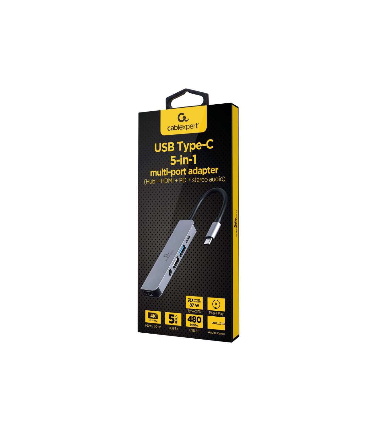 Cablexpert USB Type-C 5-in-1 multi-port adapter (Hub + HDMI + PD + stereo audio) A-CM-COMBO5-02