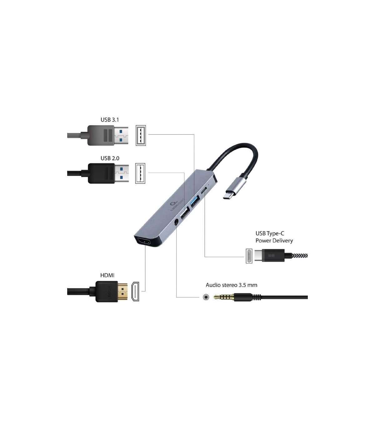 Cablexpert USB Type-C 5-in-1 multi-port adapter (Hub + HDMI + PD + stereo audio) | A-CM-COMBO5-02