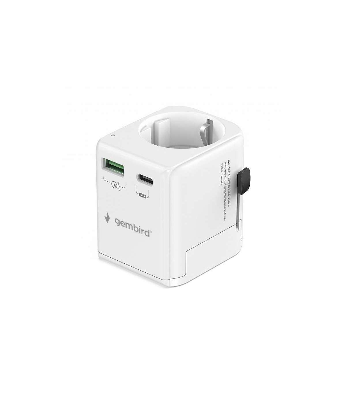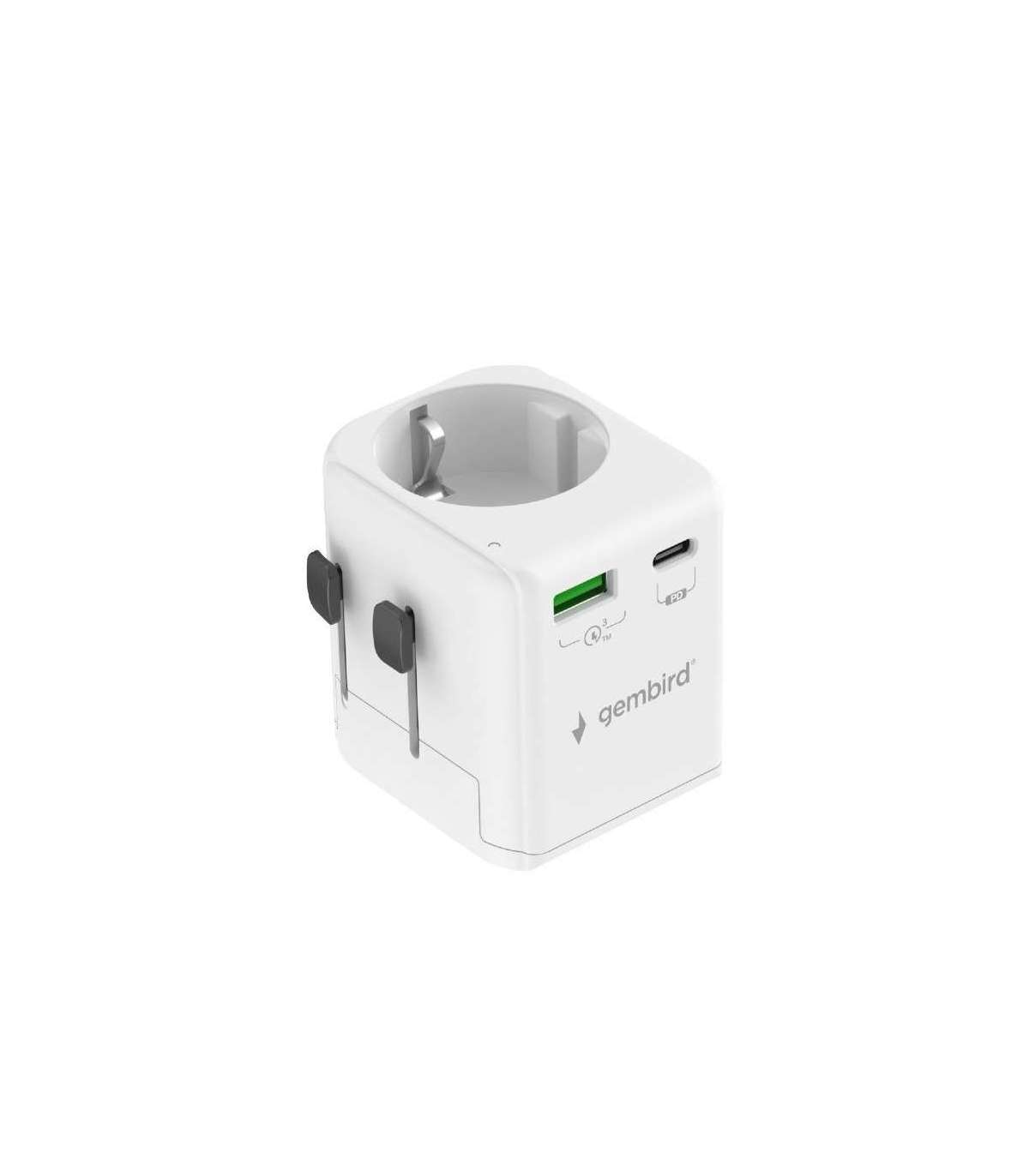 Gembird TPA-EU1A1C20-01-W Grounded universal travel power adapter, 20 W, white | Gembird