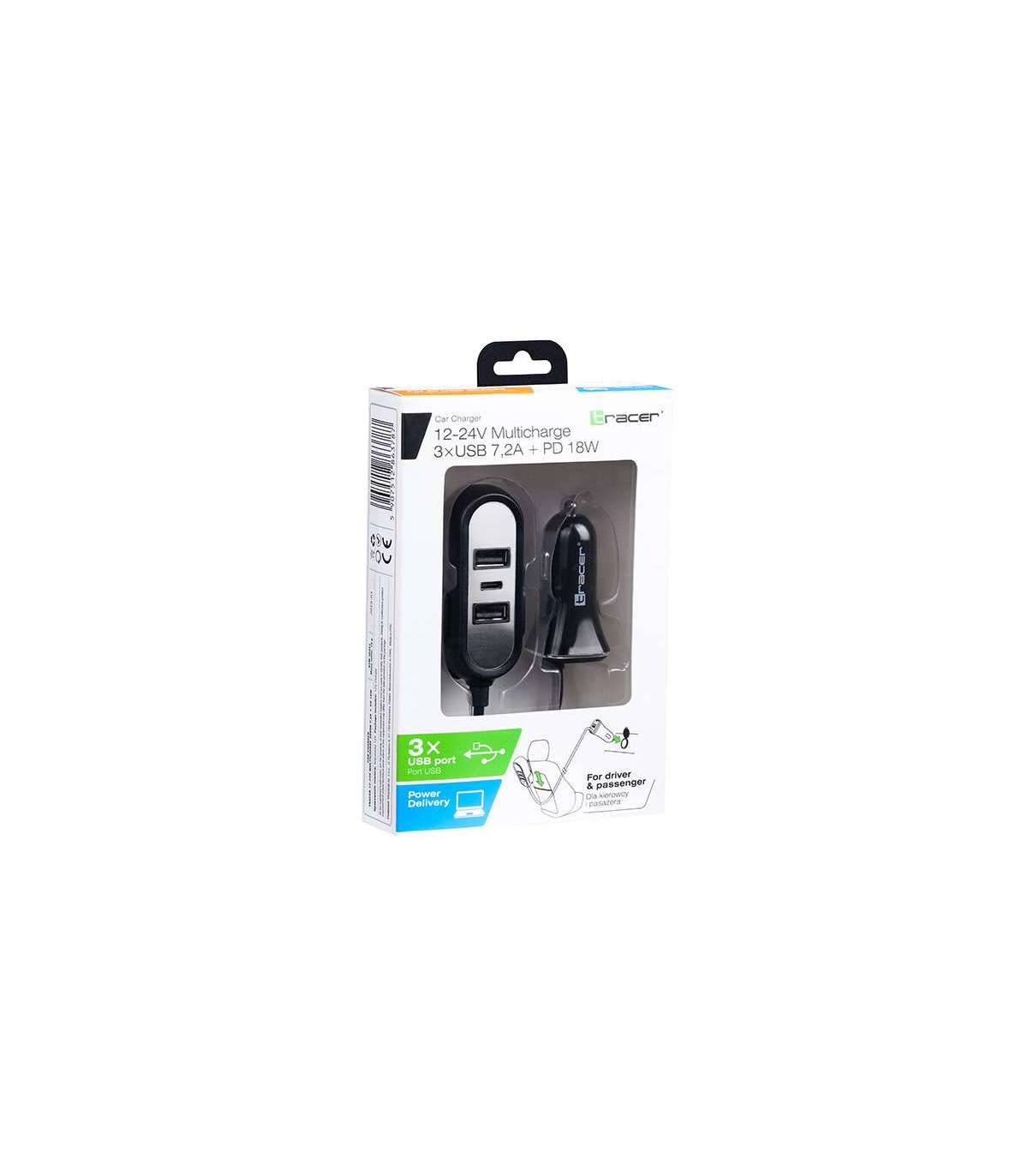 Autolaadija TRACER 12-24V MULTICHARGE 3xUSB 7.2A + PD 18W loodi nii juhile kui ka sõitjatele. Sellel on kokku 3 USB-porti mobiilseadmete või navigeerimise laadimiseks ning USB-C-port PD 18W funktsiooniga, mis võimaldab teil laadida valitud MacBookide ja netbooke, mis toetavad uusimat tehnoloogiat. See on väike ja stiilse välimusega seade, mis on kasulik igal teekonnal. Kokku toetab see kuni 7,2A.