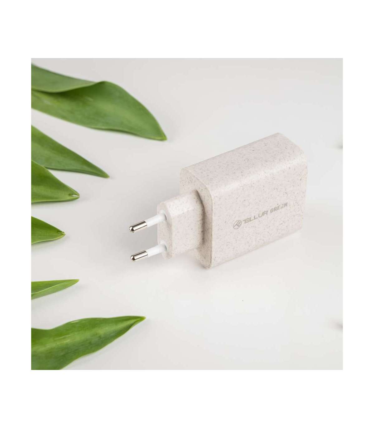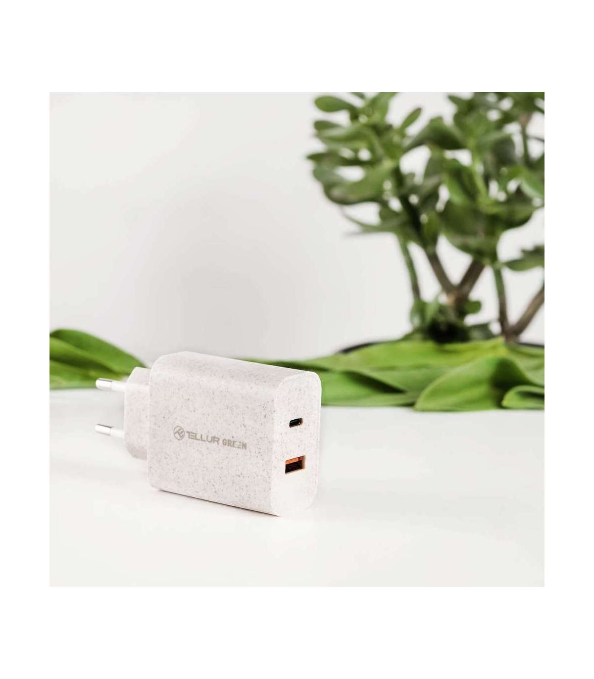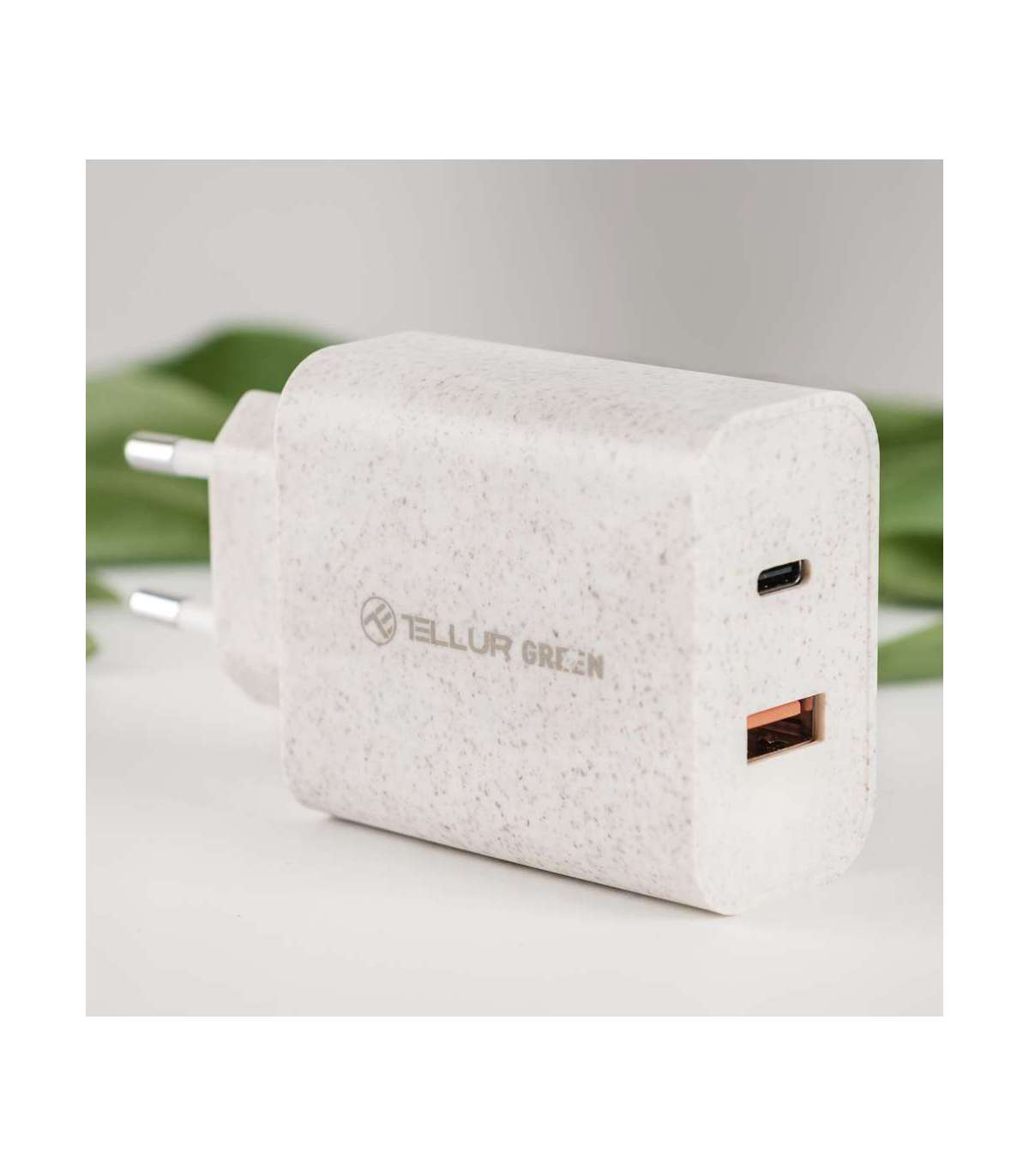 Tellur Green 38W dual port charger Type-C PD20W + USB QC3.0, cream