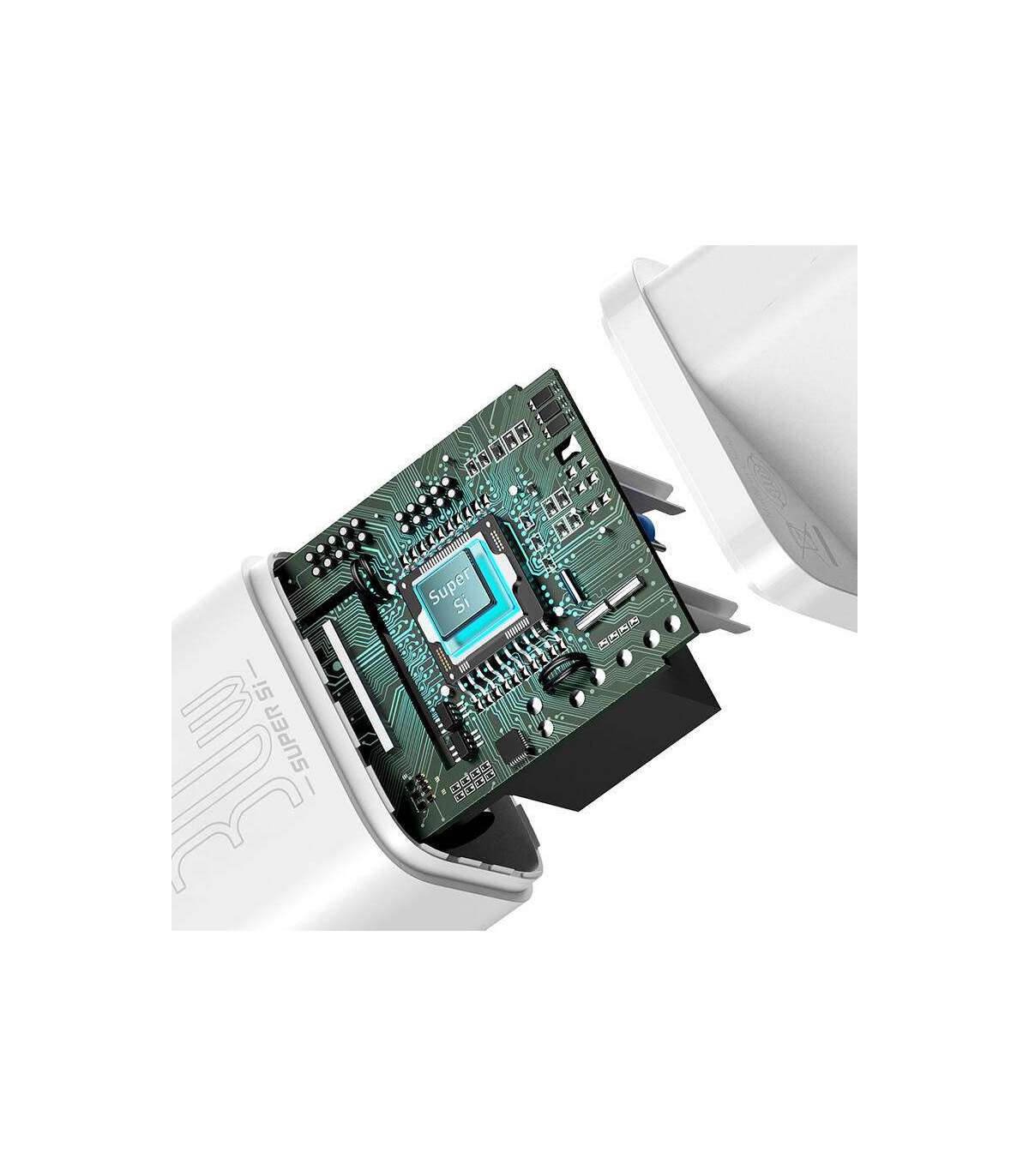 The Baseus charger automatically adjusts the current value to the type of device being powered to ensure optimum charging speed and protect it from damage. The device also has special protection against overload, short circuit and overheating, among other things. The PC housing contributes to a more efficient distribution of heat, protecting you from burns and preventing damage to the charger.