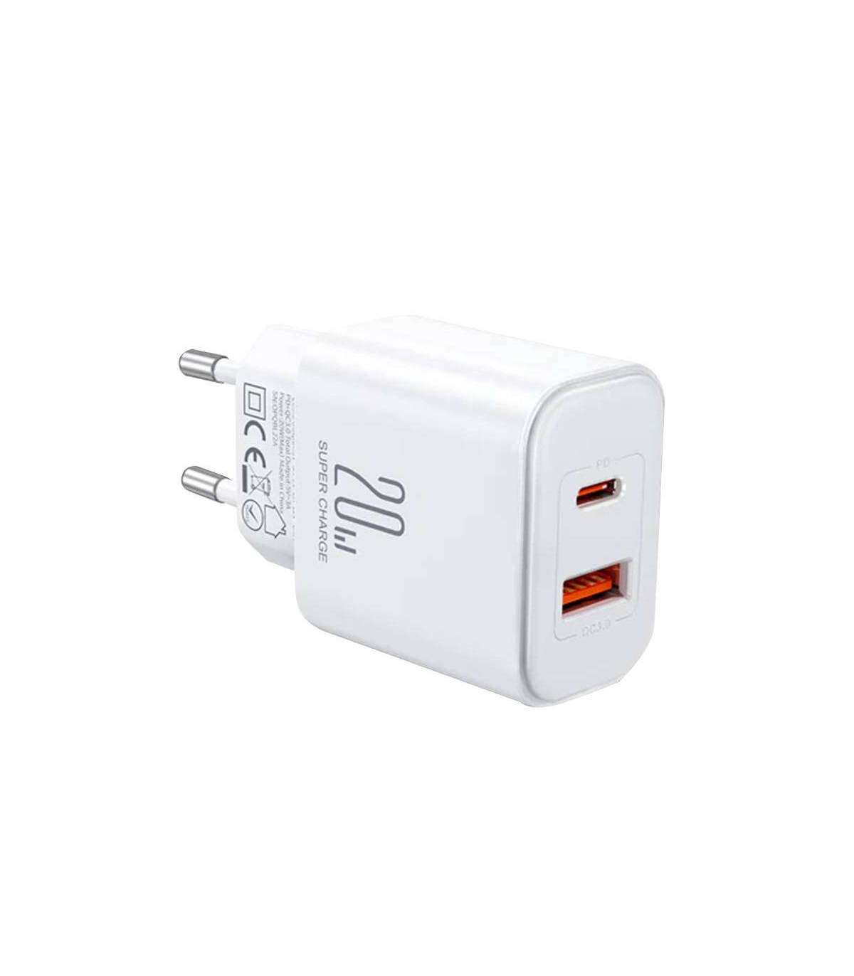 The Joyroom mains charger is the quintessence of efficiency, offering fast charging with up to 20 watts of power. Compatible with various fast charging protocols such as PD3.0, QC3.0, Samsung AFC and Huawei FCP, it is able to adapt to the needs of a wide variety of devices. What's more, with the ability to charge two devices simultaneously, you gain even more freedom and save time. The smart chip that the charger is equipped with takes care to deliver the right amount of current to each device, ensuring not only fast, but also safe charging.