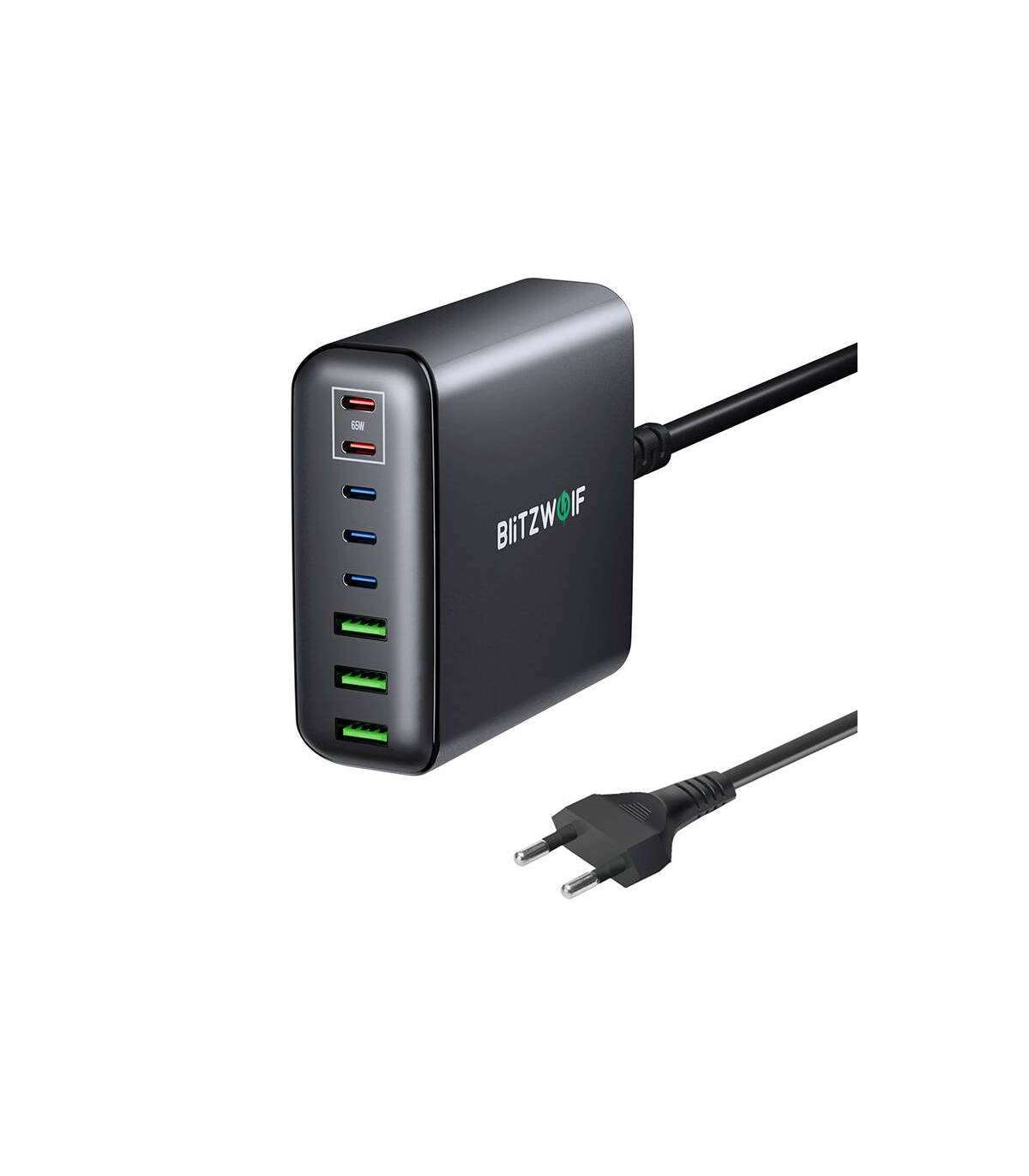 The BlitzWolf BW-S26 is a mains charger compatible with a wide range of devices including laptops, smartphones and tablets. Thanks to GaN technology, the charger is efficient and compact, offering high power output while maintaining a small size. What's more, it offers up to 8 ports, allowing you to charge multiple devices simultaneously.