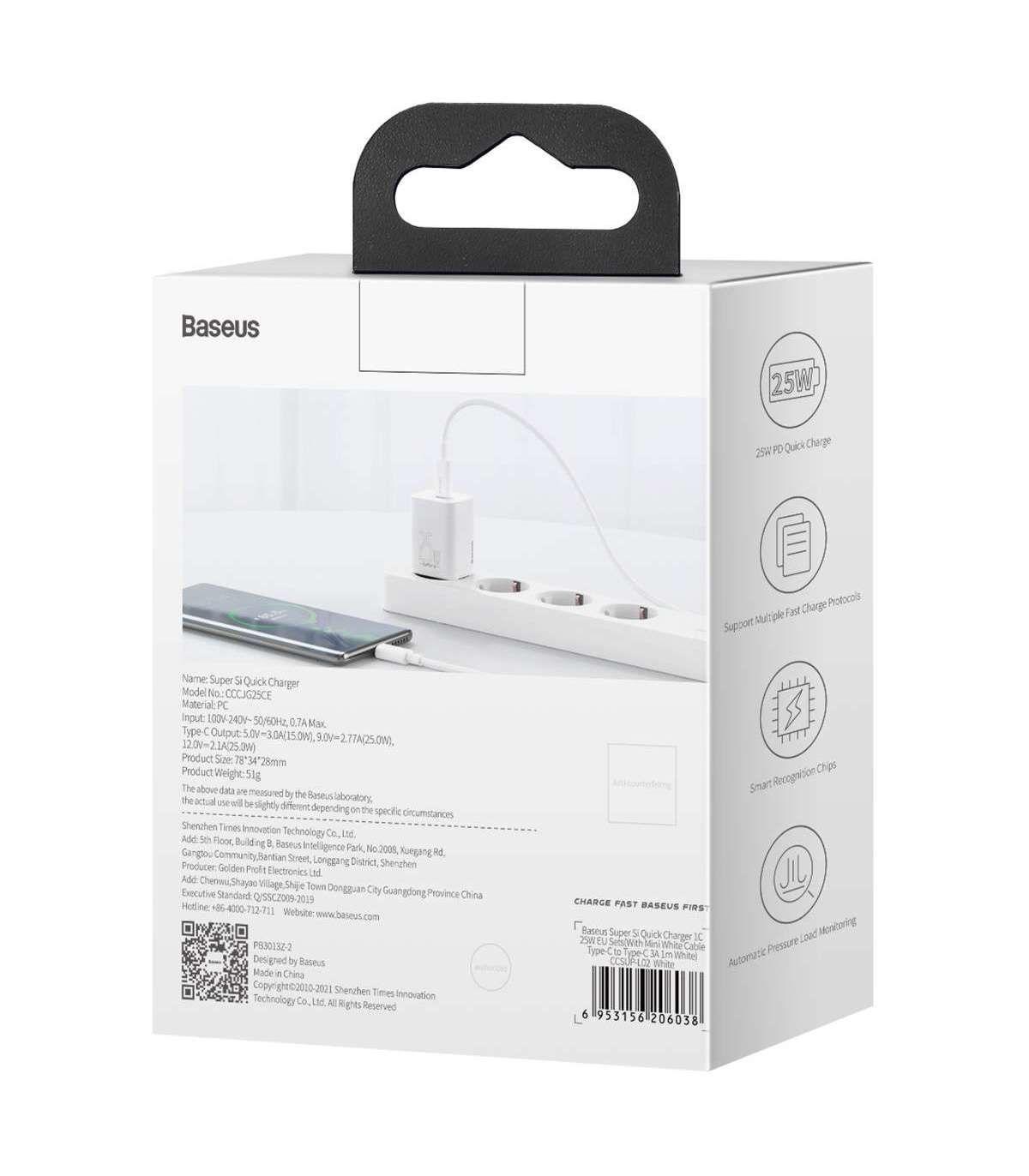 Baseus compact charger CCSP020102 allows you to quickly charge your devices with up to 25 watts of power. With its complex protection system, it protects the powered equipment from damage. Supports a variety of fast charging protocols. It is distinguished by its compatibility with a wide range of smartphones and tablets, and the 100-240V AC voltage range allows you to use it almost anywhere in the world. Its great capabilities go hand in hand with its compact size - you can easily fit it even in your pocket!