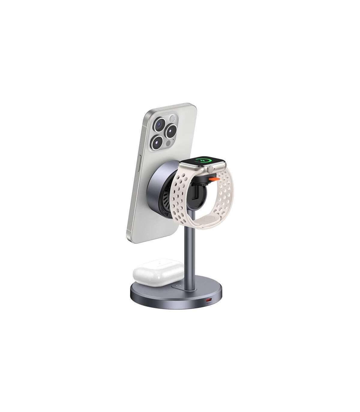 The Mcdodo CH-2460 3-in-1 Wireless Charger is the perfect solution for those who value convenience and order. With one device, you'll charge your smartphone, wireless headphones and Apple Watch at the same time, eliminating the need for several different cables and chargers. This compact charging station will fit perfectly into any interior. You'll also find an AC charger included, offering 33W of charging power.