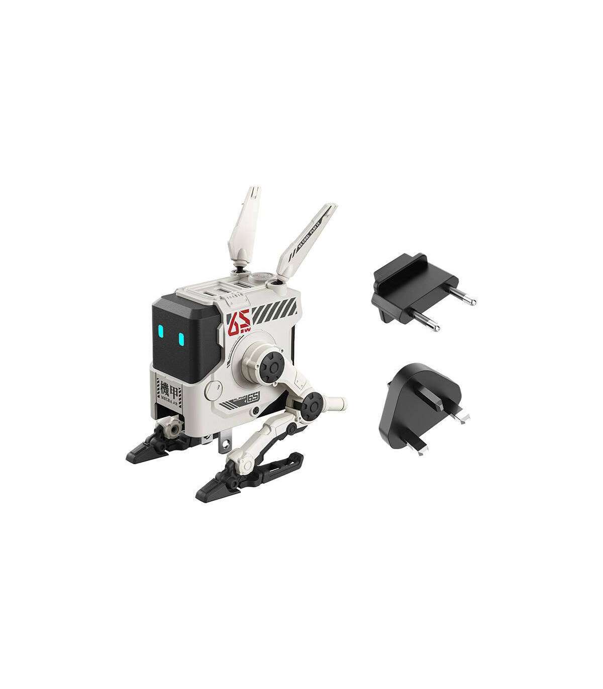 The GaN GravaStar Alpha65 65W charger combines futuristic design and advanced technology. Its unique design, inspired by cyberpunk aesthetics and mechanical robotics elements, sets it apart from other chargers on the market. It uses GaN technology and its charging power reaches 65 watts. With three available ports, it provides the versatility you need to charge several devices simultaneously.