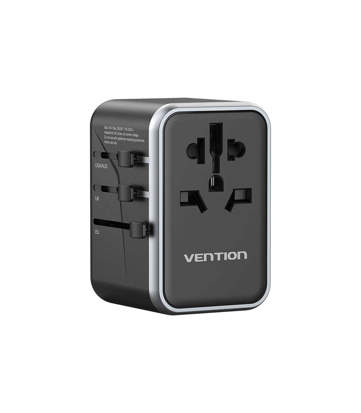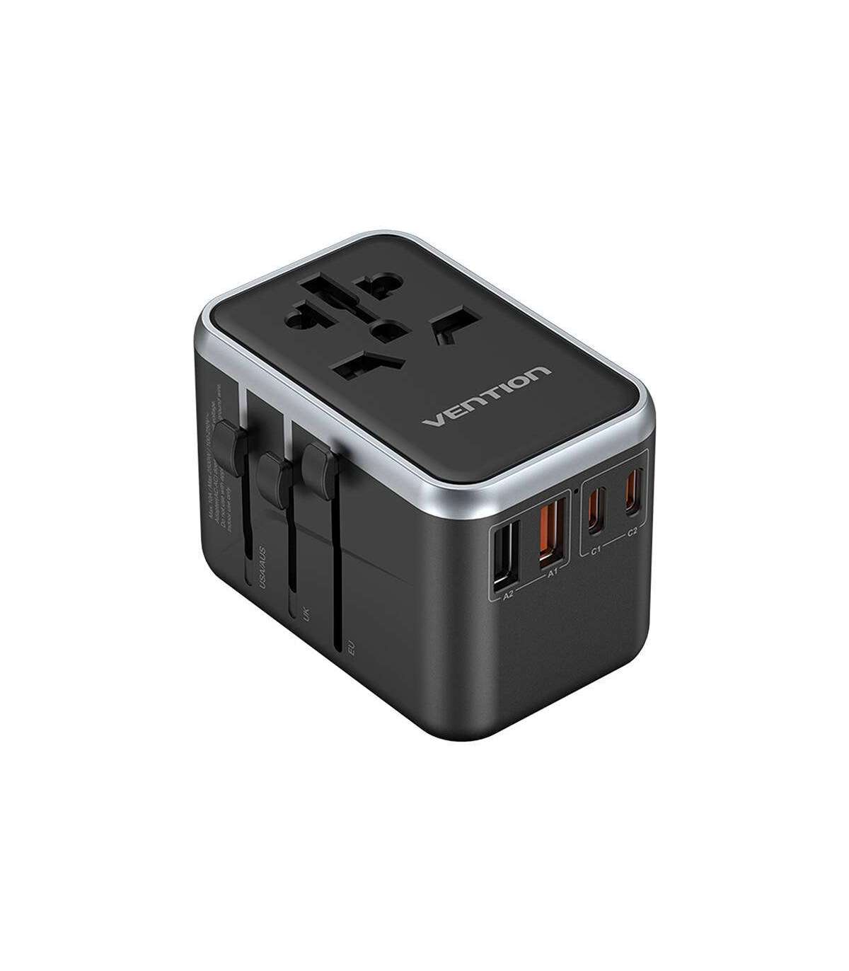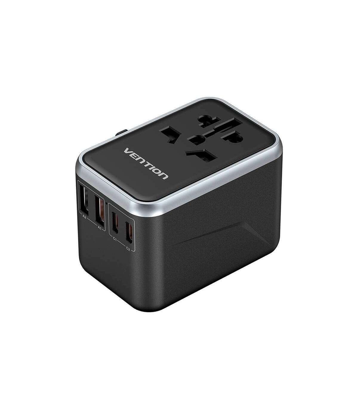 Vention FJFB0 GaN 2xUSB-C 2xUSB-A Universal Travel Adapter 65W (black).