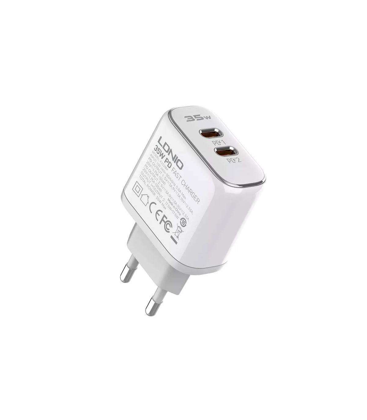 LDNIO A2528M 2USB-C power charger for Apple + USB-C - Lightning cable