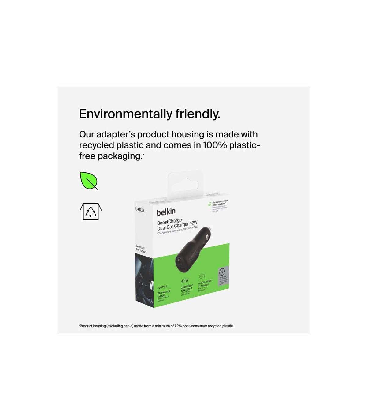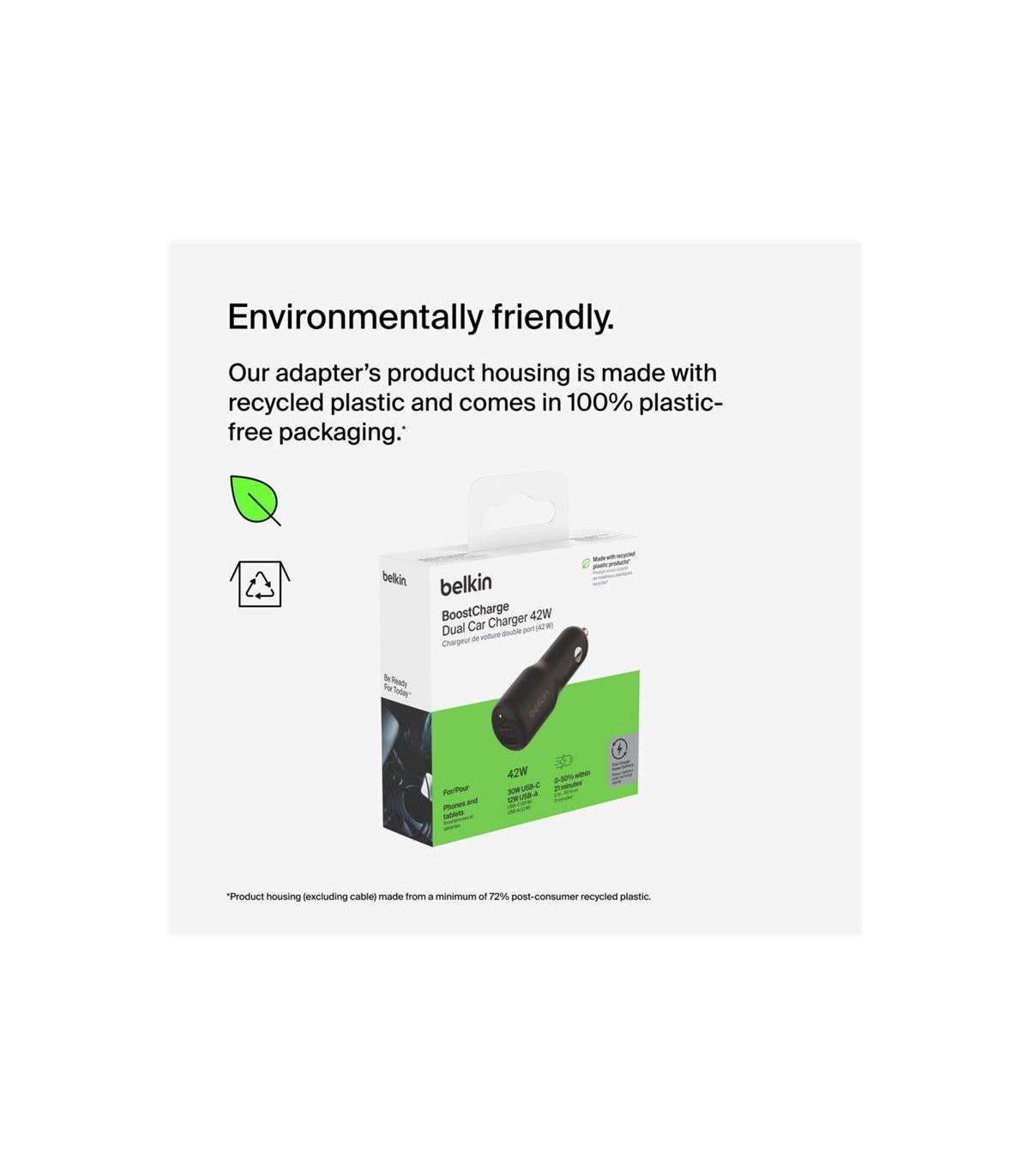 Belkin BOOST CHARGE 42w-30w USB-C PD PPS + 12w USB-A Car Charger, CCB005btBK