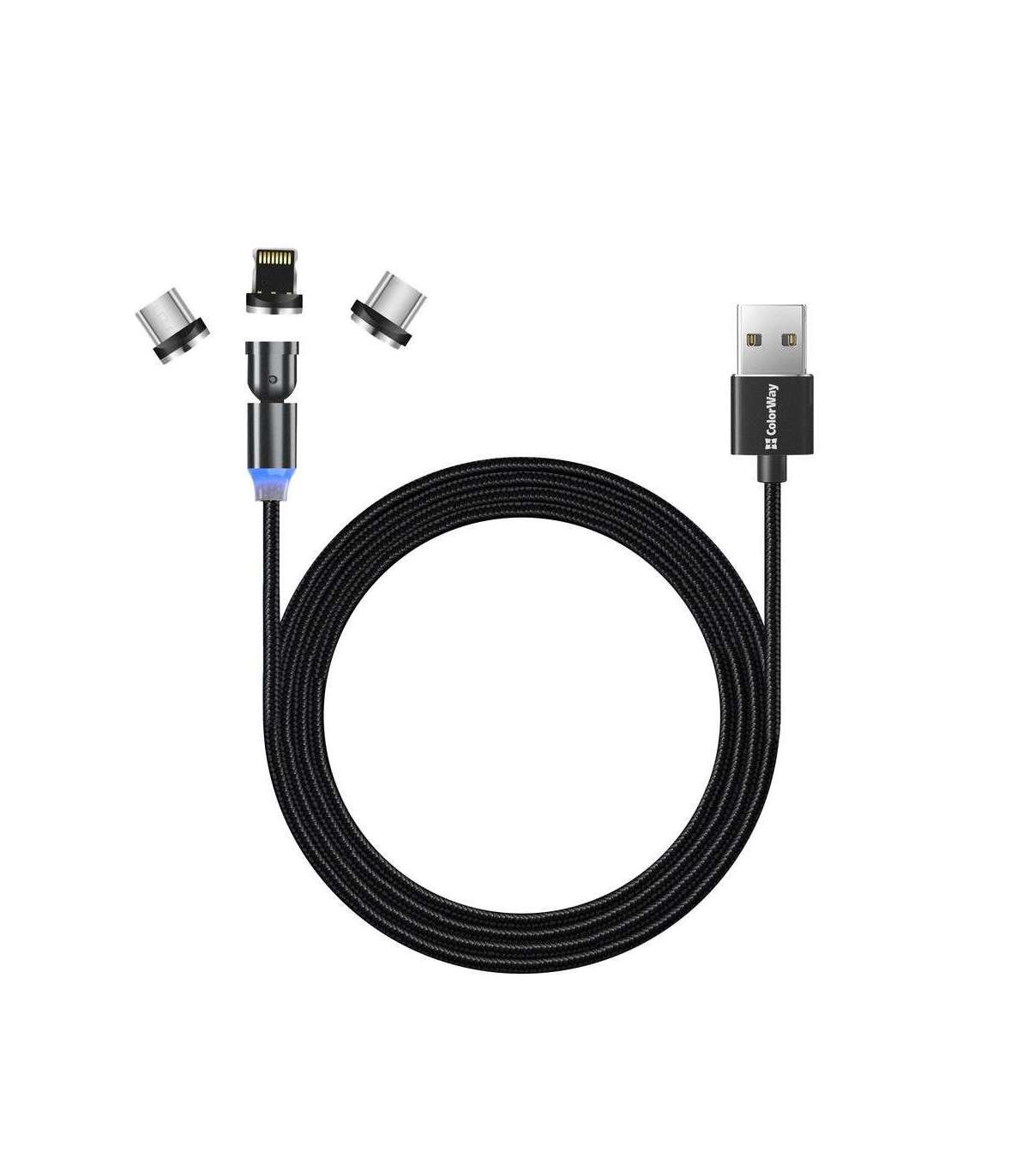 ColorWay Cable 3in1 (Lightning+MicroUSB+Type-C) Magnetic Rotation 540° 2.4А, 1m CW-CBUU037-BK