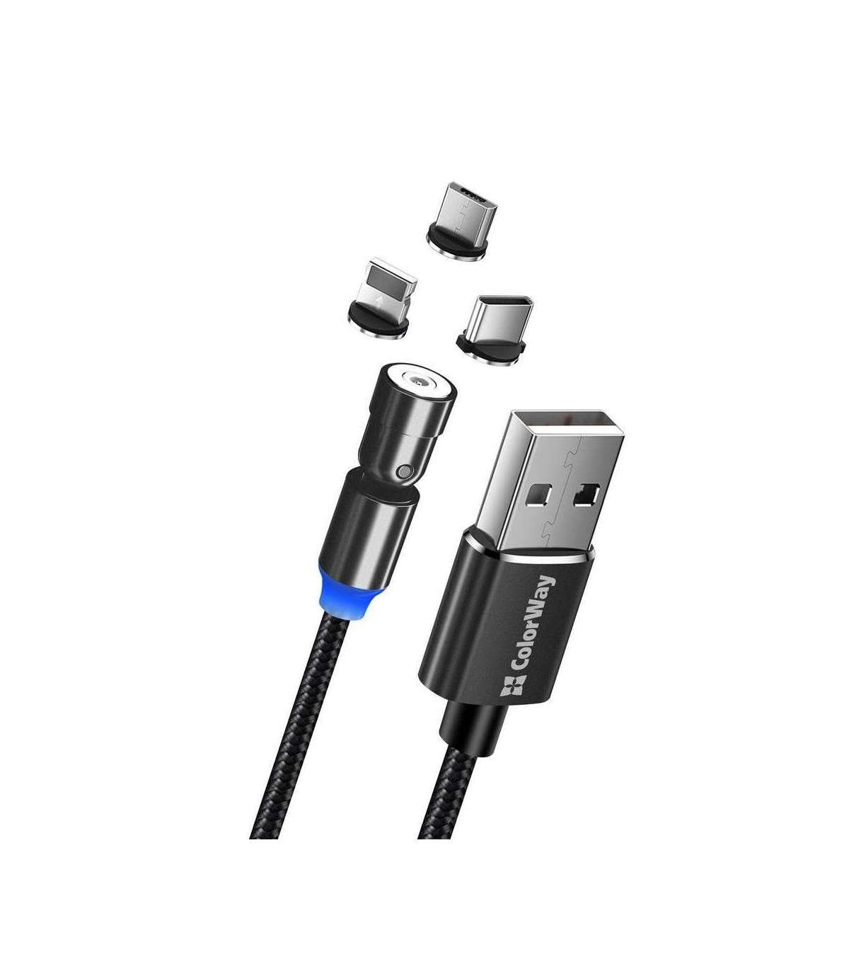 ColorWay Cable 3in1 (Lightning+MicroUSB+Type-C) Magnetic Rotation 540° 2.4А, 1m | CW-CBUU037-BK