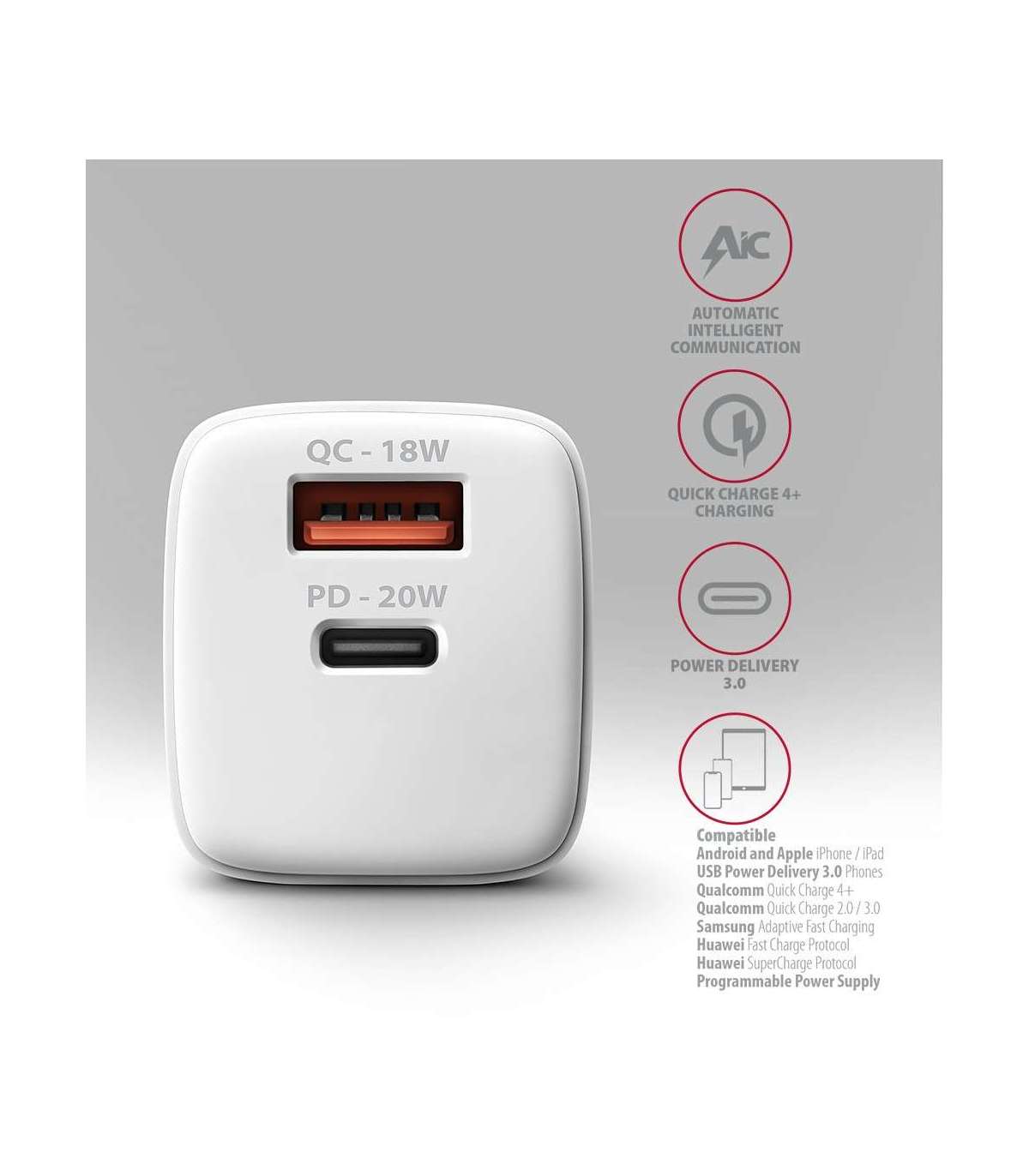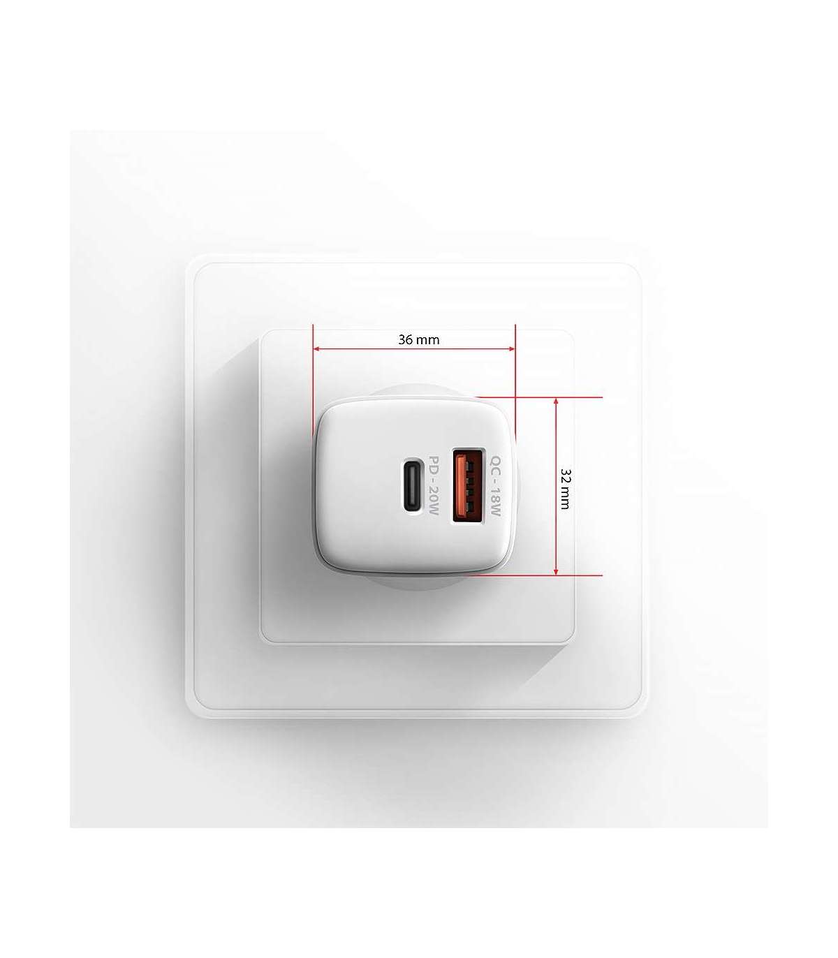 - Wallcharger 2x port (USB-A + USB-C), 20W