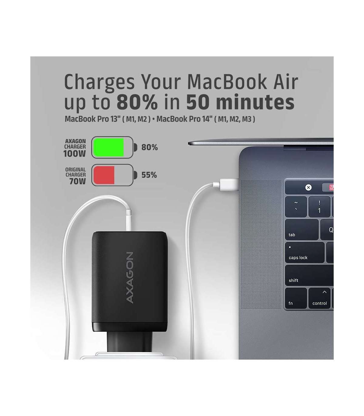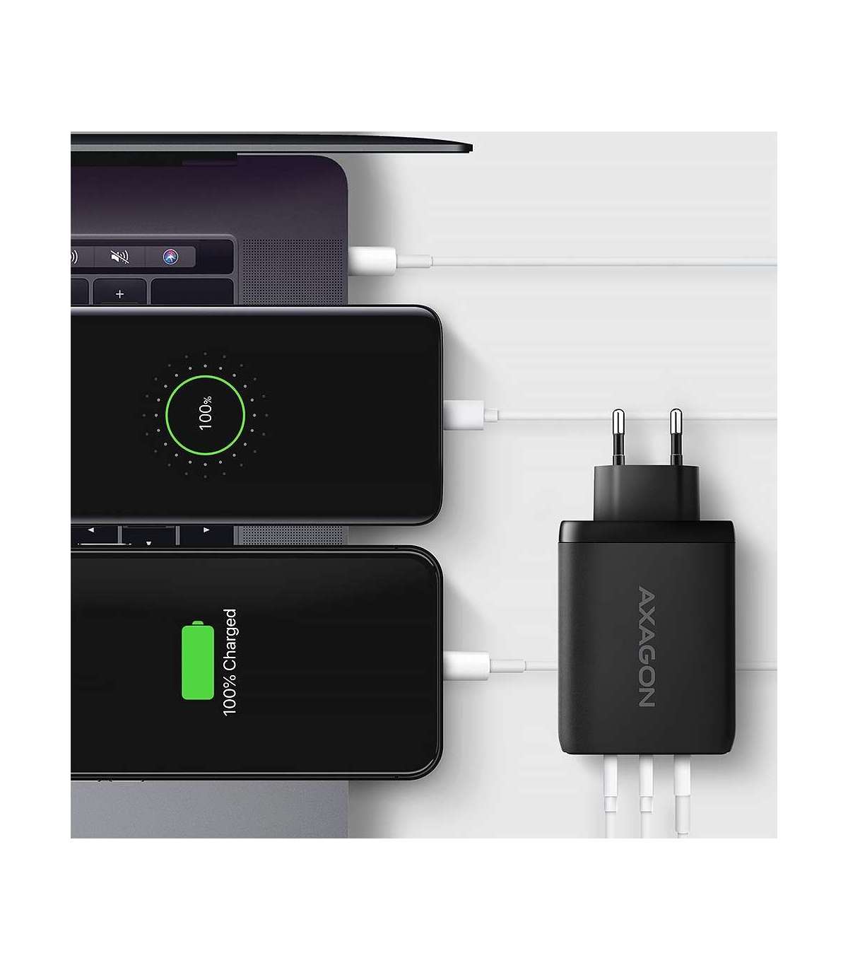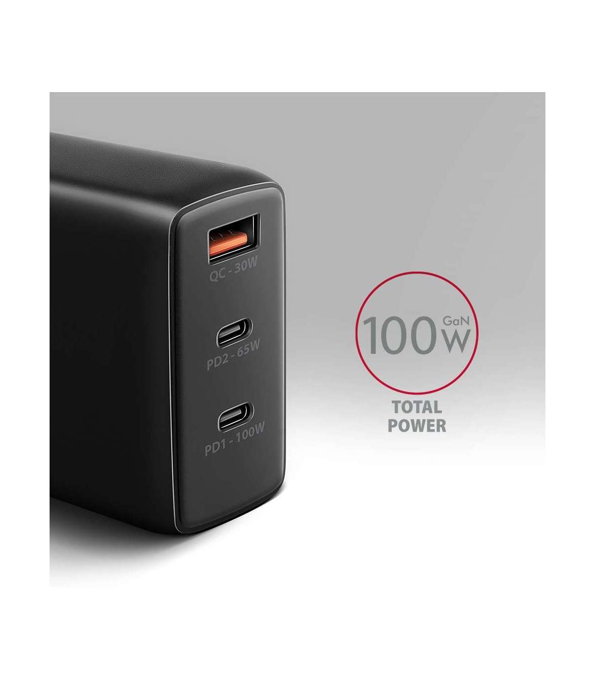AXAGON GaN wallcharger, 3x port (USB-A + 2x USB-C), PD3.0/PPS/QC4+/SFC2.0/AFC/SCP/FCP/Apple, 100W | ACU-DPQ100