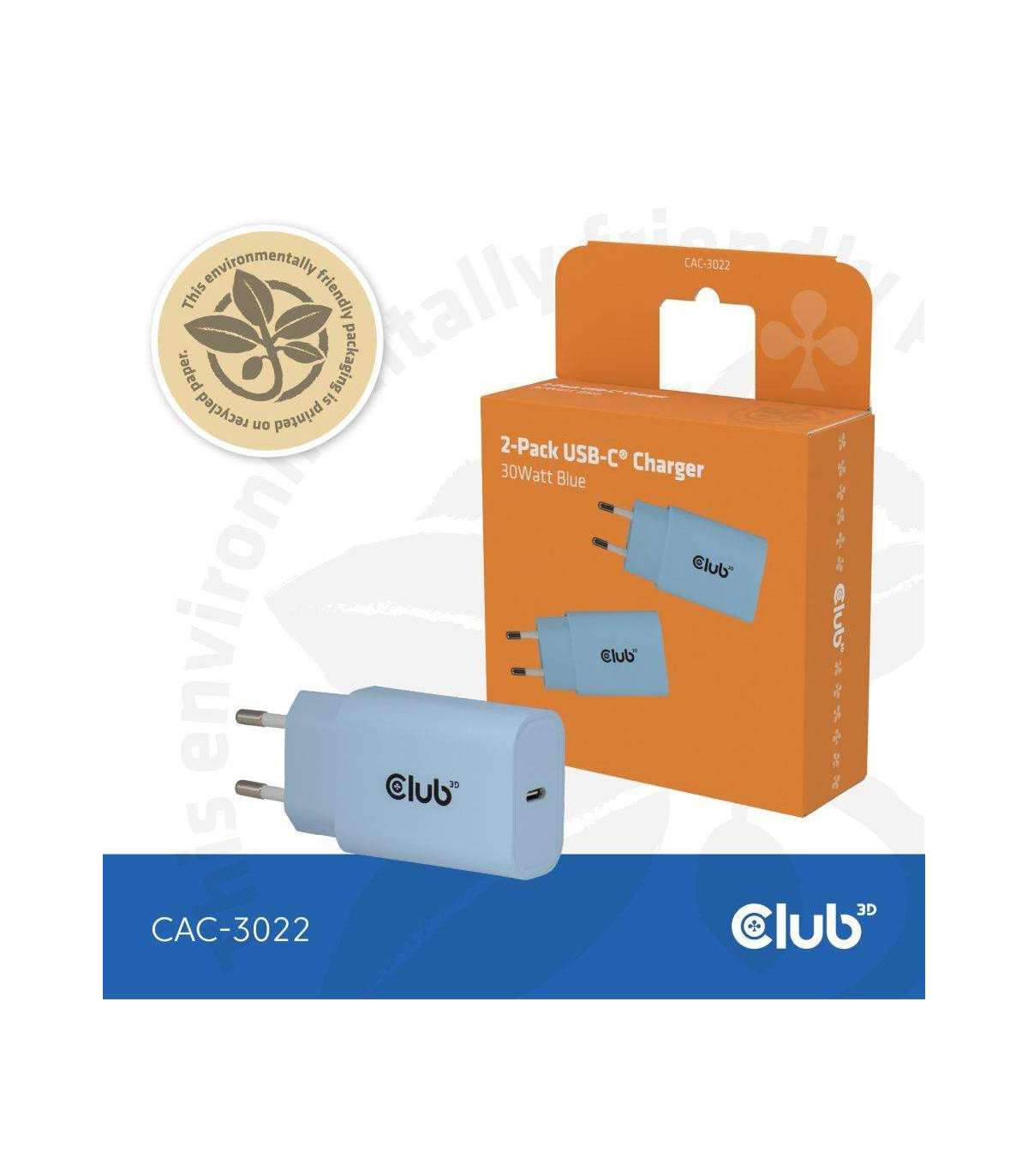 MOBILE CHARGER WALL USB-C/2PACK 30W BLUE CAC-3022 CLUB3D