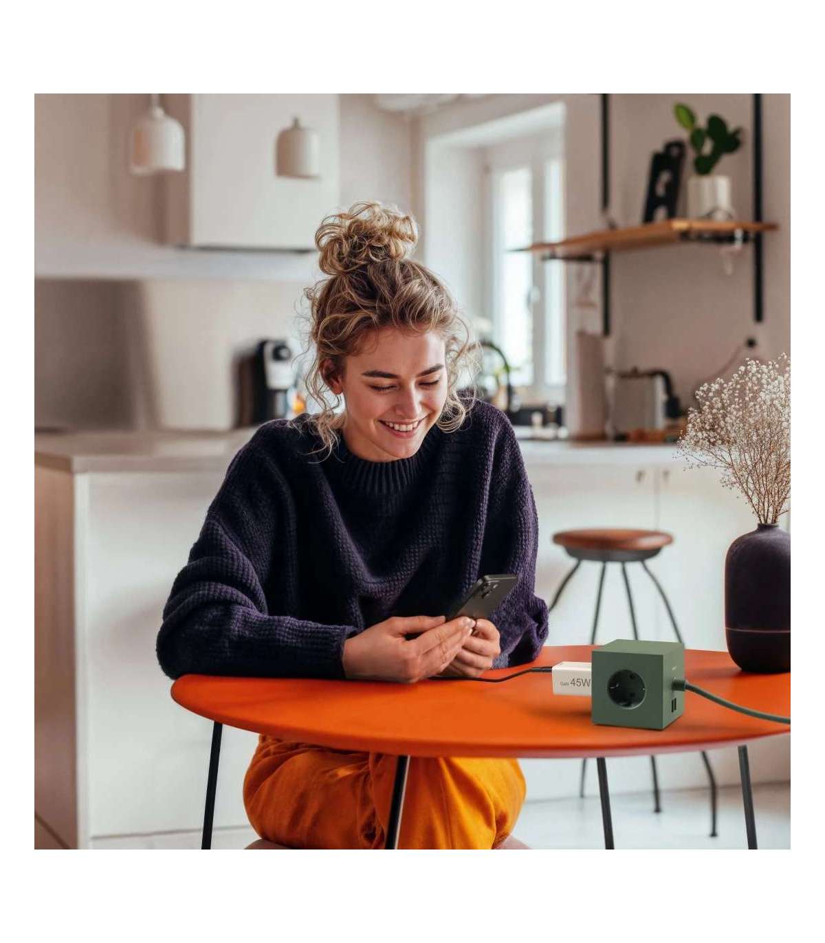 Täisvõimsus kuni kolmele seadmele korraga: kiirlaadijaga saate mobiiltelefone, tahvelarvuteid jne laadida pistikupesa kaudu tippkiirusel – laadimisadapter Power Delivery kiirlaadimistehnoloogiaga toetab ka Qualcomm® Quick Charge™ 2.0/3.0.