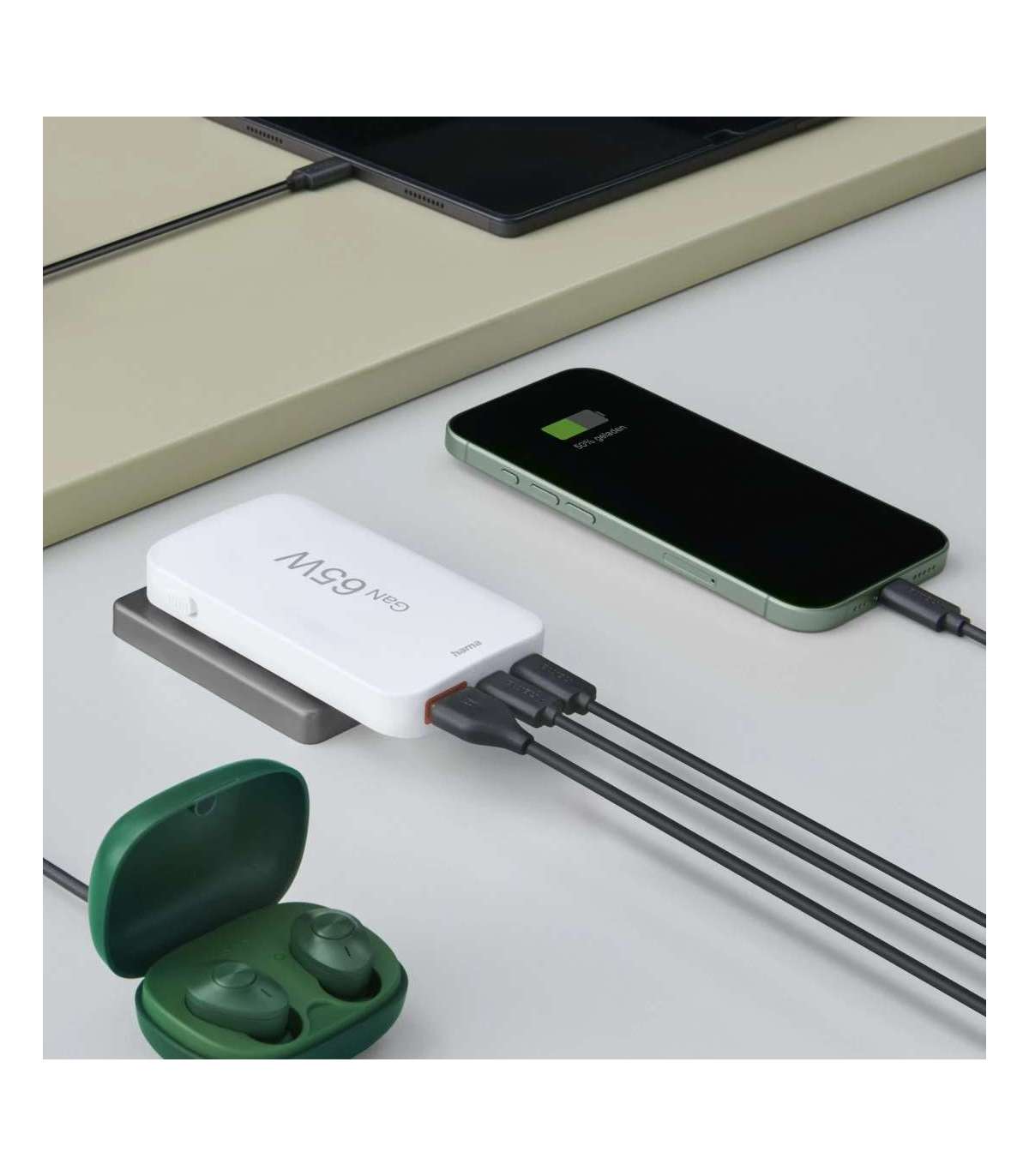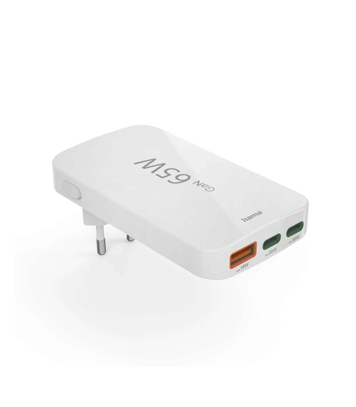 Hama 00201976 Flat Charger 220V With 2xUSB-C/USB-A 65W White