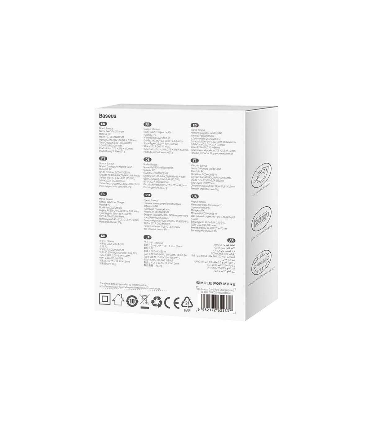 Baseus mini mains charger is equipped with GaN technology, which makes it comfortable to use. While its compact size may surprise you, don't be fooled. Despite its small size, this charger hides real power. With 20 watts, it is capable of charging your phone to 50% in just 26 minutes. It's perfect for those who appreciate both efficiency and practicality. This charger is proof that great power can fit in a small package.
